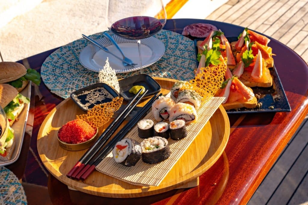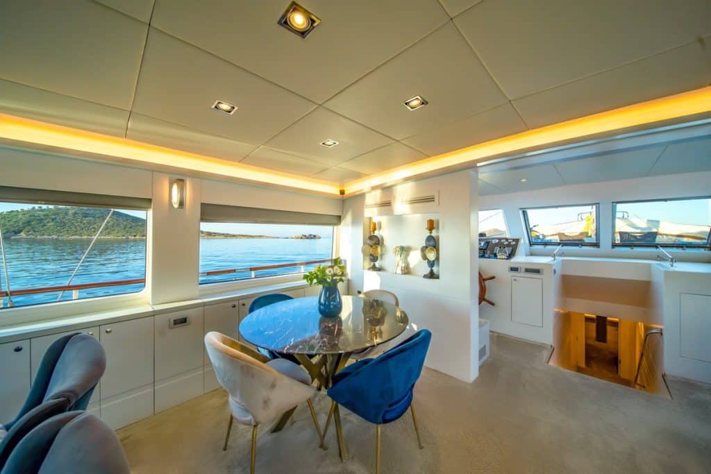Unsere 38 m lange Gulet Double Eagle wurde 2005 gebaut. Ihre endgültige Form erhielt sie mit der Renovierung und Sanierung, die sie 2015 durchlief. Unser Boot verfügt über 5 Kabinen, darunter 2 Master-, 1 Doppel- und 2 Zweibettkabinen, jede stilvoller und komfortabler, mit eigener Dusche, WC und Klimaanlage. 6 Es gibt separate Wohnbereiche, eine voll ausgestattete Küche, Essbereiche im Innen- und Außenbereich sowie Ruhebereiche für die Besatzung. Es gibt ausreichend Sonnenkissen, Stühle und Serviersets für alle Gäste. Die Gulet Double Eagle verfügt dank ihrer vollwertigen Radio-, GSM-Telefon- und Navigationsausrüstung über ein vollwertiges Radio. Bodrum, Göcek, Marmaris, Fethiye usw. Sie können sicher zu unseren Zielen der Blauen Kreuzfahrt segeln. LCD-Fernseher, DVD-Player und Stereoanlage stehen unseren geschätzten Gästen der Blauen Reise in der Lounge unserer Gulet zur Verfügung. Wassersportarten wie Kanufahren, Tauchen und Windsurfen stehen unseren Gästen auf Wunsch optional zur Verfügung. Unser Boot Double Eagle bietet unseren Passagieren, die die Blaue Reise in den unberührten Buchten der Türkei genießen möchten, auch Unterhaltung und die Möglichkeit, auf dem Boot zu entspannen. Gulet Double Eagle ist bereit, unsere geschätzten Gäste willkommen zu heißen, die erwägen, ein Gulet für eine Woche in den Regionen Bodrum, Göcek, Fethiye, Marmaris oder Gökova zu mieten. |