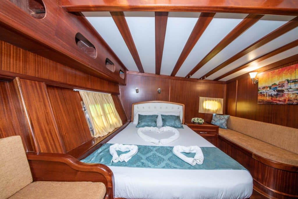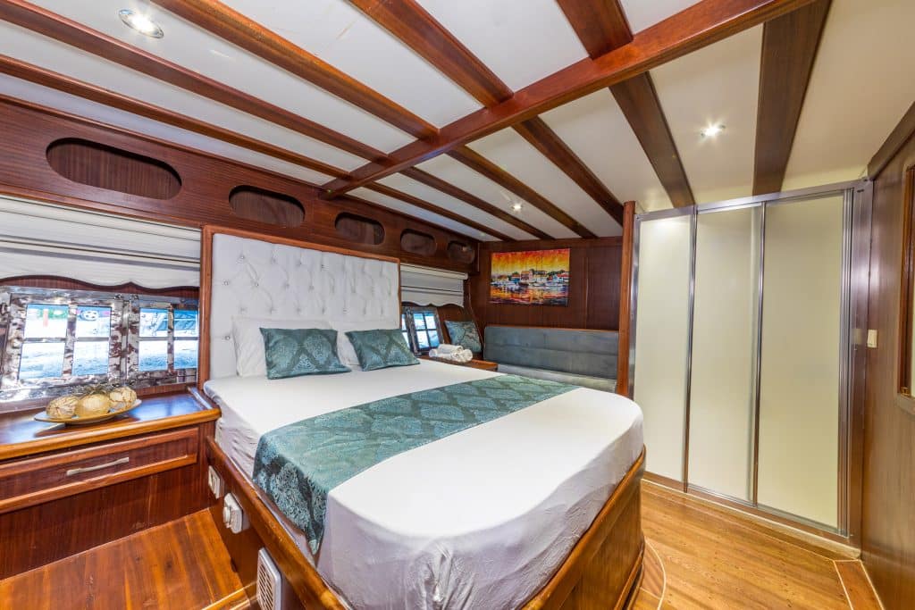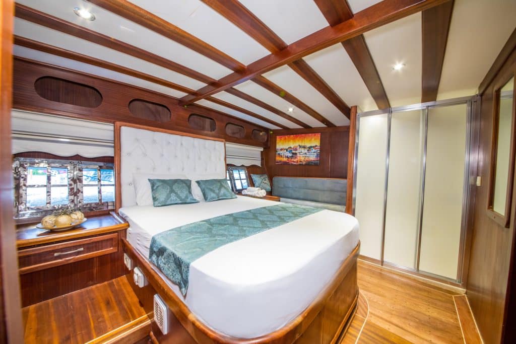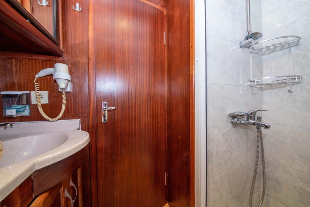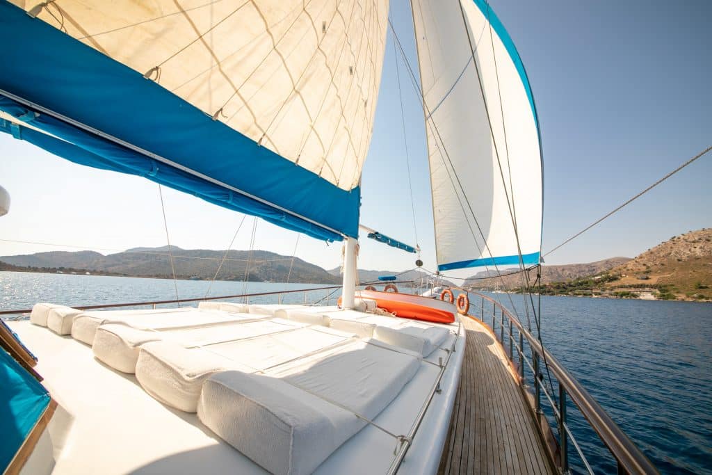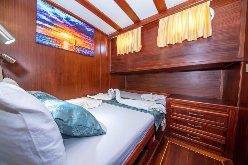 Unsere 24 m lange Gulet Gokce 1 wurde 1996 gebaut. Ihre endgültige Form erhielt sie mit der Renovierung und Sanierung im Jahr 2011. Unser Boot verfügt über 5 Kabinen, 1 Master- und 4 Doppelkabinen, jede stilvoller und komfortabler, mit eigener Dusche, WC und Klimaanlage. 3 Es gibt separate Wohnbereiche, eine voll ausgestattete Küche, Essbereiche im Innen- und Außenbereich sowie Ruhebereiche für die Besatzung. Es gibt ausreichend Sonnenkissen, Stühle und Serviersets für alle Gäste. Dank seiner vollwertigen Wireless-, GSM-Telefon- und Navigationsausrüstung bietet Gulet Gokce 1; Bodrum, Göcek, Marmaris, Fethiye usw. Sie können sicher zu unseren Zielen der Blauen Kreuzfahrt segeln.