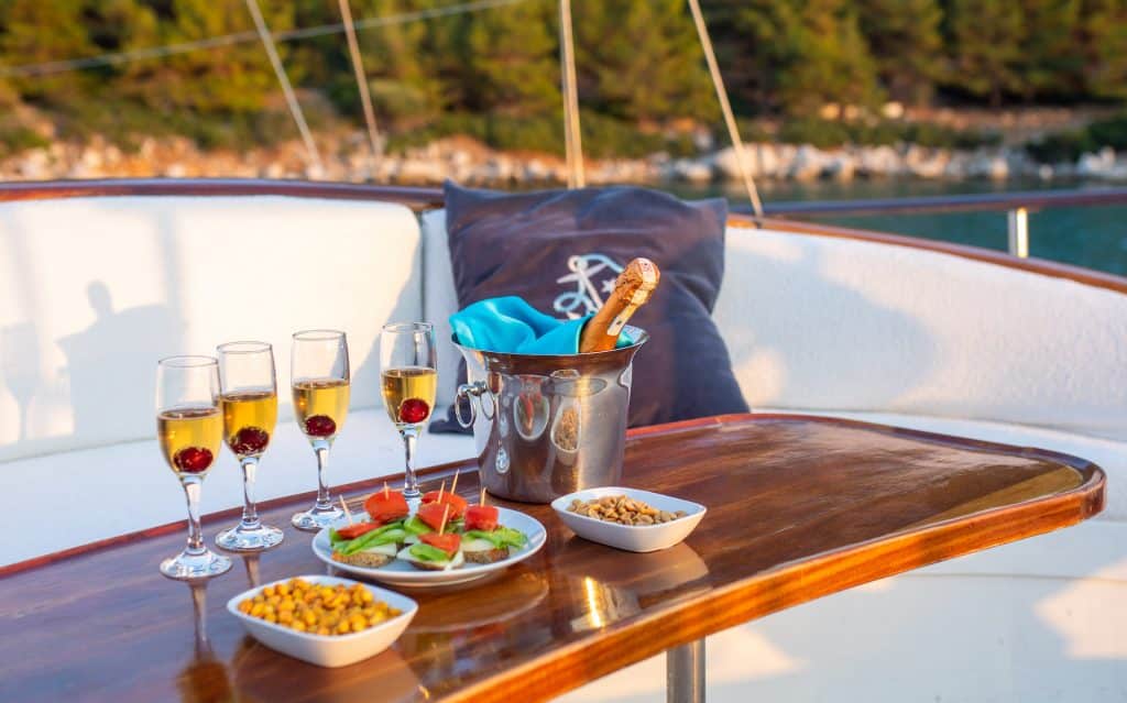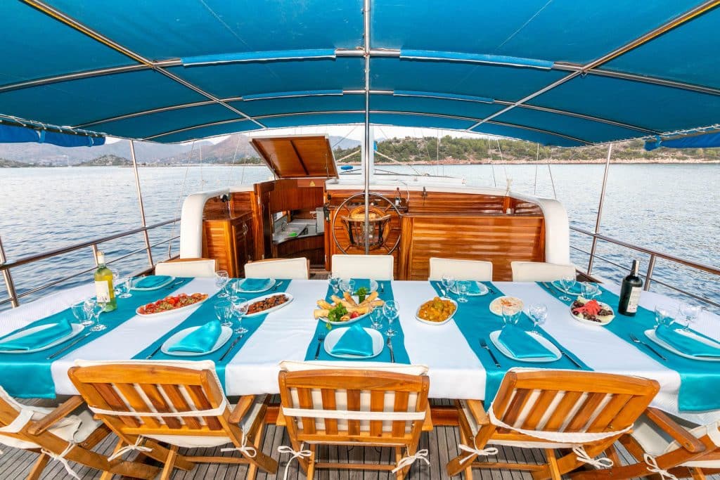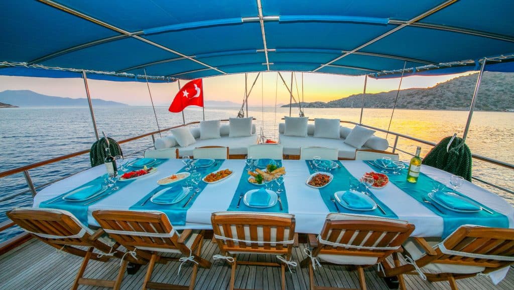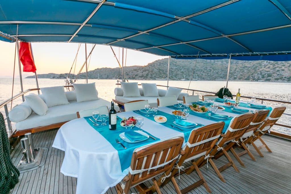 LCD-Fernseher, DVD-Player und Stereoanlage stehen unseren geschätzten Gästen der Blauen Reise in der Lounge unserer Gulet zur Verfügung. Wassersportarten wie Kanufahren, Tauchen und Windsurfen stehen unseren Gästen auf Wunsch optional zur Verfügung. Unser Boot bietet unseren Passagieren, die die Blaue Reise in den unberührten Buchten der Türkei genießen möchten, auch Unterhaltung und die Möglichkeit, sich auf dem Boot zu entspannen. Gulet Gokce 1 ist bereit, unsere geschätzten Gäste willkommen zu heißen, die erwägen, ein Gulet für eine Woche in den Regionen Bodrum, Göcek, Fethiye, Marmaris oder Gökova zu mieten.