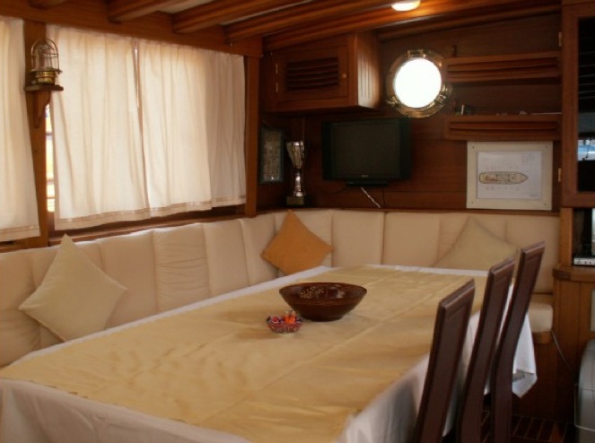 LCD-Fernseher, DVD-Player und Stereoanlage stehen unseren geschätzten Gästen der Blauen Reise in der Lounge unserer Gulet zur Verfügung. Wassersportarten wie Kanufahren, Tauchen und Windsurfen stehen unseren Gästen auf Wunsch optional zur Verfügung. Unser Boot bietet unseren Passagieren, die die Blaue Reise in den unberührten Buchten der Türkei genießen möchten, auch Unterhaltung und die Möglichkeit, sich auf dem Boot zu entspannen. Gulet Levent Kaptan ist bereit, unsere geschätzten Gäste willkommen zu heißen, die erwägen, ein Gulet für eine Woche in den Regionen Bodrum, Göcek, Fethiye, Marmaris oder Gökova zu mieten.