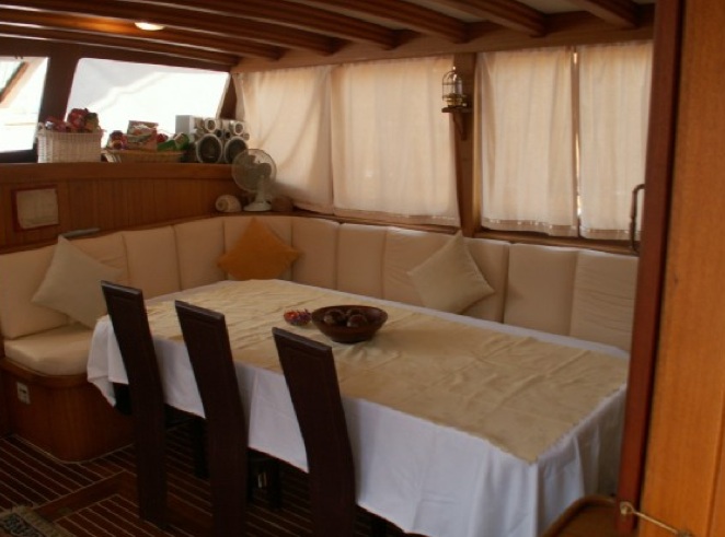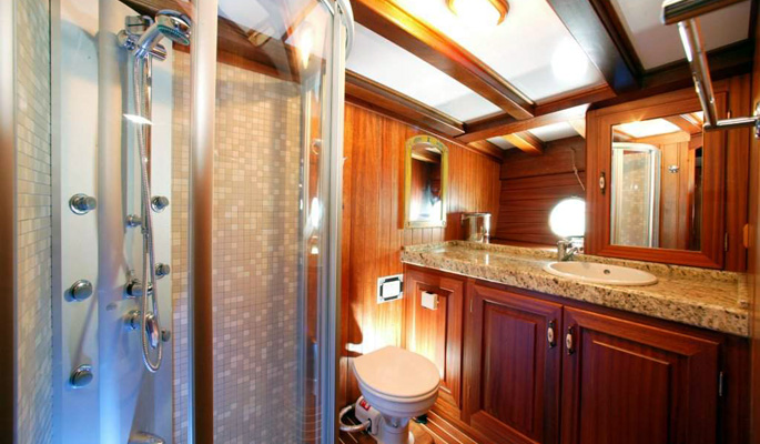 Unser 28 m langes Gulet Levent Kaptan wurde 1998 gebaut. Seine endgültige Form erhielt es mit der Renovierung und Sanierung, die es 2009 durchlief. Unser Boot verfügt über 5 Kabinen, darunter 1 Master-, 1 Doppel- und 3 Zweibettkabinen, jede stilvoller und komfortabler als die andere, mit eigener Dusche, WC und Klimaanlage. 4 Es gibt separate Wohnbereiche, eine voll ausgestattete Küche, Essbereiche im Innen- und Außenbereich sowie Ruhebereiche für die Besatzung. Es gibt ausreichend Sonnenkissen, Stühle und Serviersets für alle Gäste. Gulet Levent Kaptan verfügt dank seiner vollwertigen drahtlosen GSM-Telefonnavigationsausrüstung; Bodrum, Göcek, Marmaris, Fethiye usw. Sie können sicher zu unseren Zielen der Blauen Kreuzfahrt segeln.