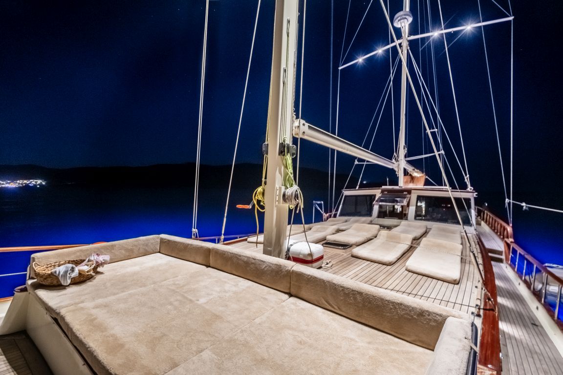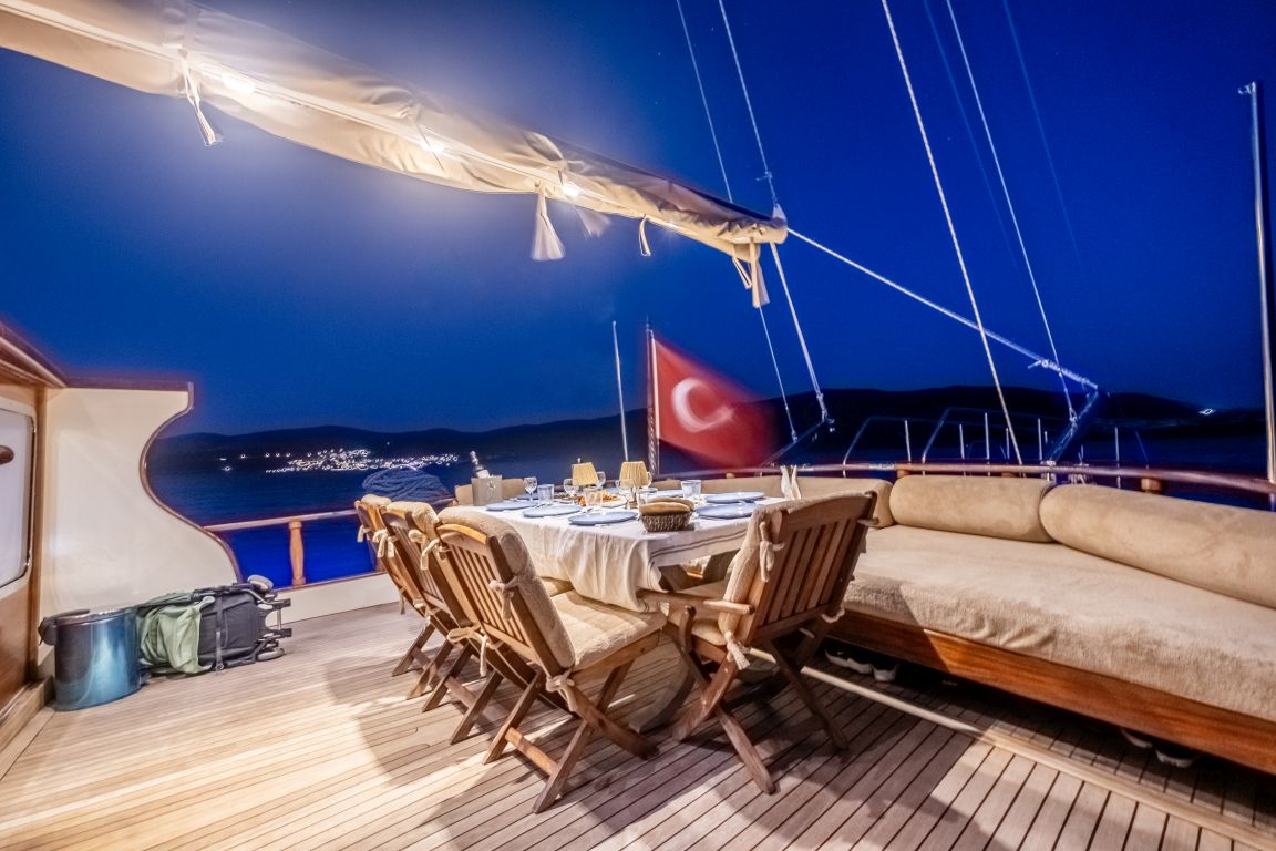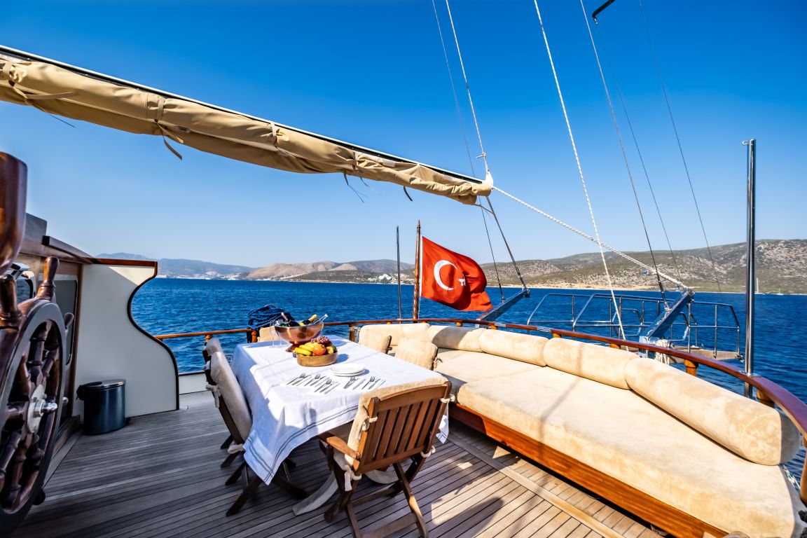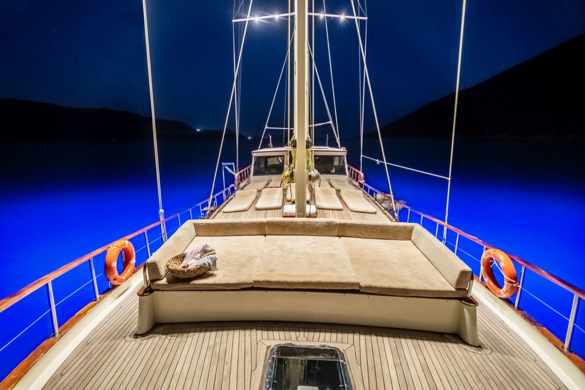 Unser 23 m langes Gulet Leylali wurde 2009 gebaut. Seine endgültige Form erhielt es mit der Renovierung und Sanierung, die es 2017 durchlief. Unser Boot verfügt über 5 Kabinen, 1 Master und 4 Doppelkabinen, jede stilvoller und komfortabler, mit eigener Dusche, WC und Klimaanlage. 3 Es gibt separate Wohnbereiche, eine voll ausgestattete Küche, Essbereiche im Innen und Außenbereich sowie Ruhebereiche für die Besatzung. Es gibt ausreichend Sonnenkissen, Stühle und Serviersets für alle Gäste. Gulet Leylali verfügt dank seiner vollwertigen Radio-, GSM-Telefon- und Navigationsausrüstung; Bodrum, Göcek, Marmaris, Fethiye usw. Sie können sicher zu unseren Zielen der Blauen Kreuzfahrt segeln. LCD-Fernseher, DVD-Player und Stereoanlage stehen unseren geschätzten Gästen der Blauen Reise in der Lounge unserer Gulet zur Verfügung. Wassersportarten wie Kanufahren, Tauchen und Windsurfen stehen unseren Gästen auf Wunsch optional zur Verfügung. Unser Boot bietet unseren Passagieren, die die Blaue Reise in den unberührten Buchten der Türkei genießen möchten, auch Unterhaltung und die Möglichkeit, sich auf dem Boot zu entspannen. Gulet Leylali heißt unsere geschätzten Gäste willkommen, die eine wöchentliche Gulet in den Regionen Bodrum, Göcek, Fethiye, Marmaris oder Gökova mieten möchten. |