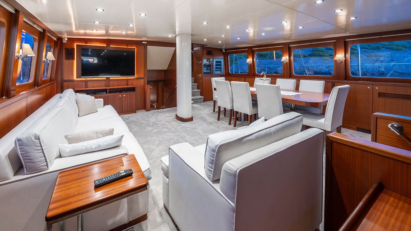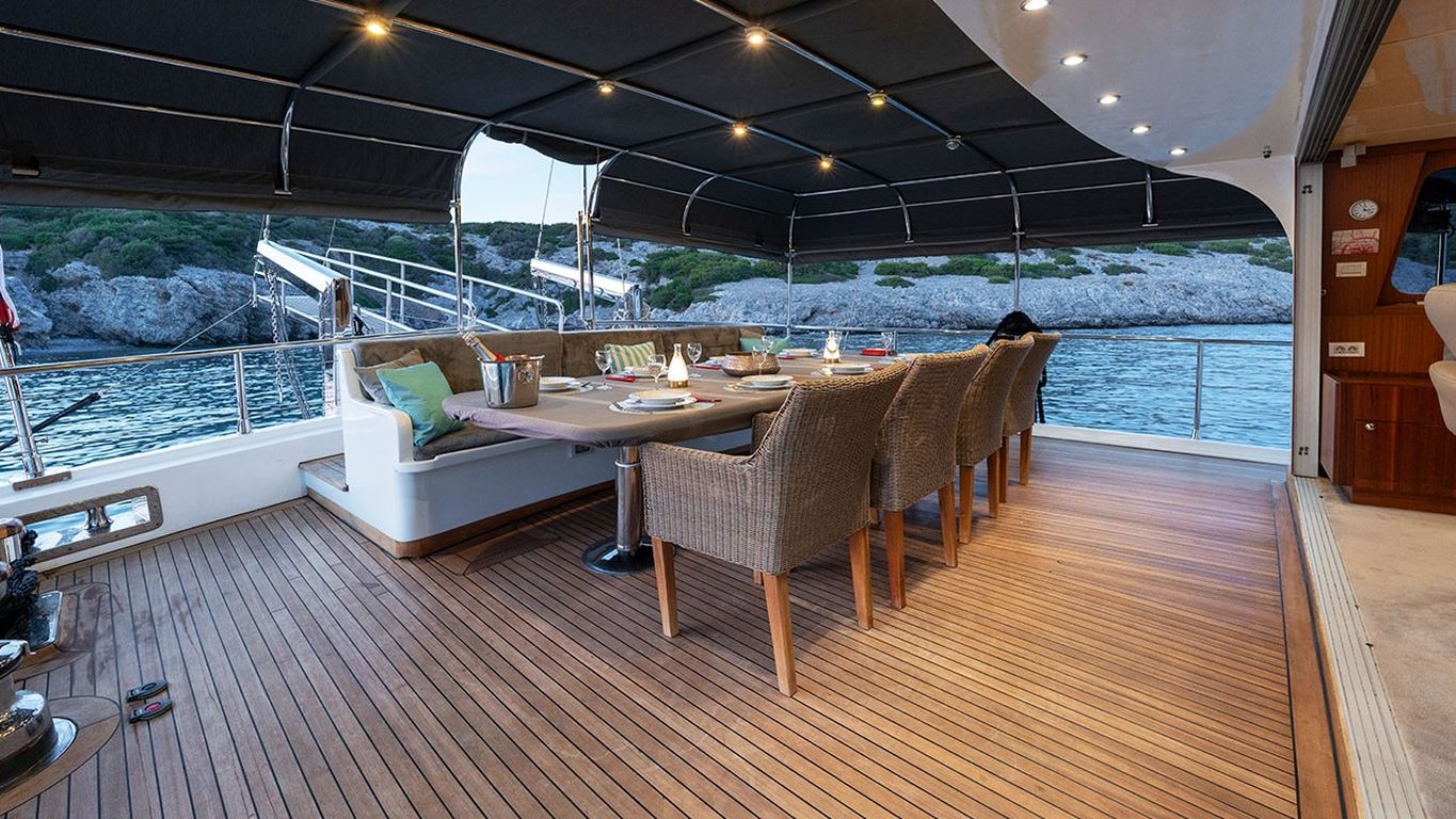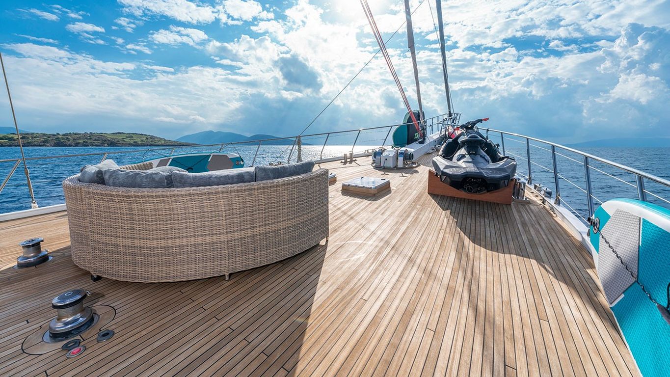 | Die Gulet Lucky You ist eine 37 Meter lange Luxusgulet, die 2012 gebaut wurde und Gästen Eleganz, Raum und modernen Komfort bietet. Das Schiff verfügt über fünf Kabinen – zwei VIP-, eine Master- und zwei Doppelkabinen – alle mit eigenem Bad und Klimaanlage, und bietet Platz für bis zu zehn Gäste. Die Breite von 7,40 Metern sorgt für großzügige Decksflächen und komfortable Innenräume. Das Deck bietet große Sonnenbereiche, schattige Lounges und einen Esstisch im Freien. Der elegante Salon verfügt über einen Essbereich, eine Lounge und eine moderne Küche. Für Wassersportfreunde bietet die Lucky You eine umfangreiche Auswahl an Aktivitäten: Ein 150 PS Beiboot, Jet-Ski, Stand-up-Paddleboards, Ringo, Kanus, Schnorchel- und Angelausrüstung stehen zur Verfügung. Angetrieben wird sie von zwei 440 PS MAN-Motoren und zwei 27 kVA Generatoren, mit einer Geschwindigkeit von 10 Knoten. Die Klimaanlage ist 24 Stunden täglich in Betrieb, Stromsysteme 12V/24V/220V. Die Lucky You ist ideal für Familien oder Gruppen, die ein luxuriöses Blauer-Reise-Erlebnis mit umfassender Ausstattung und Wassersportmöglichkeiten suchen. |