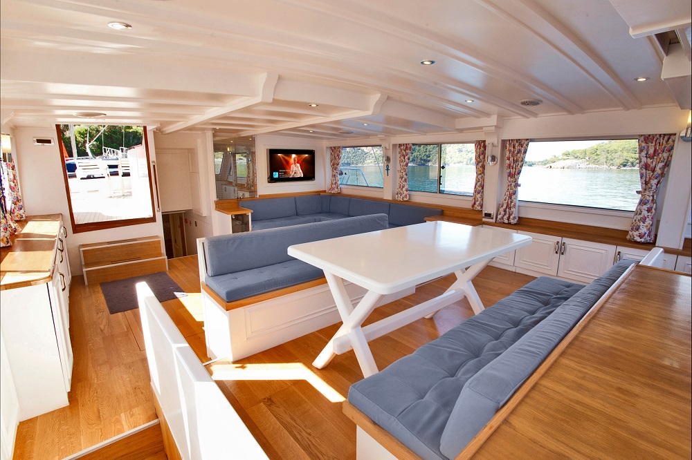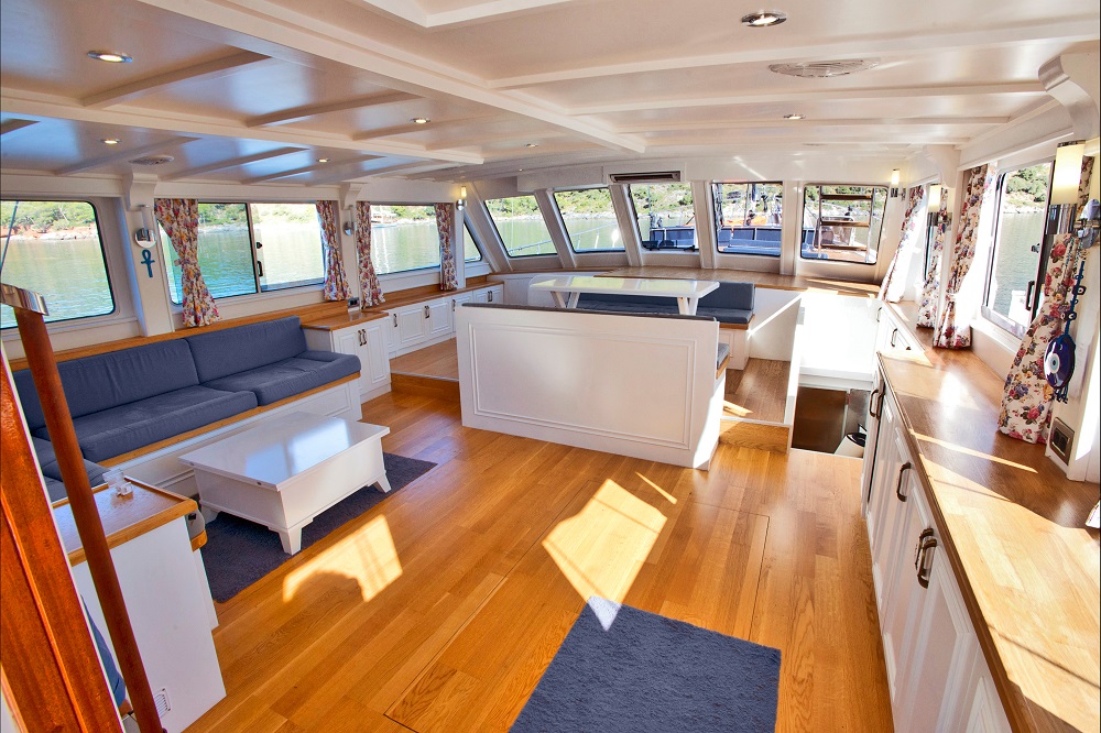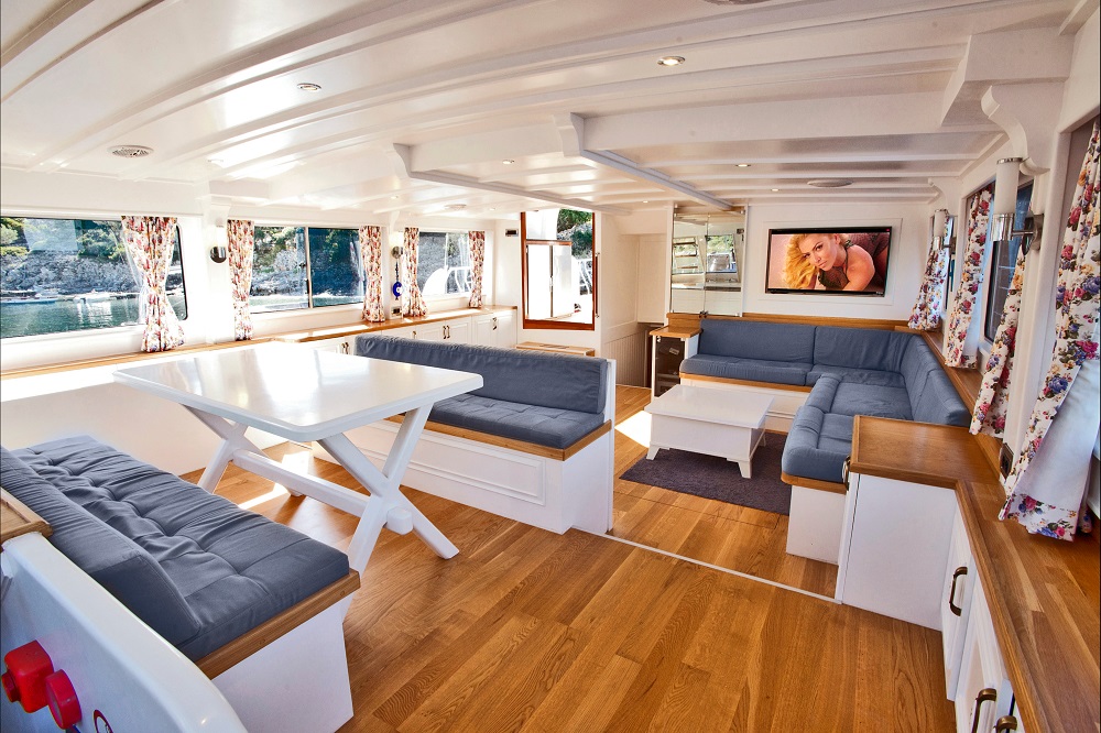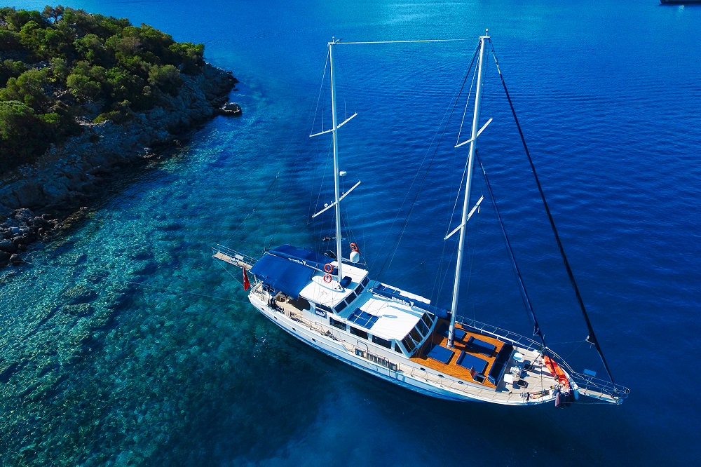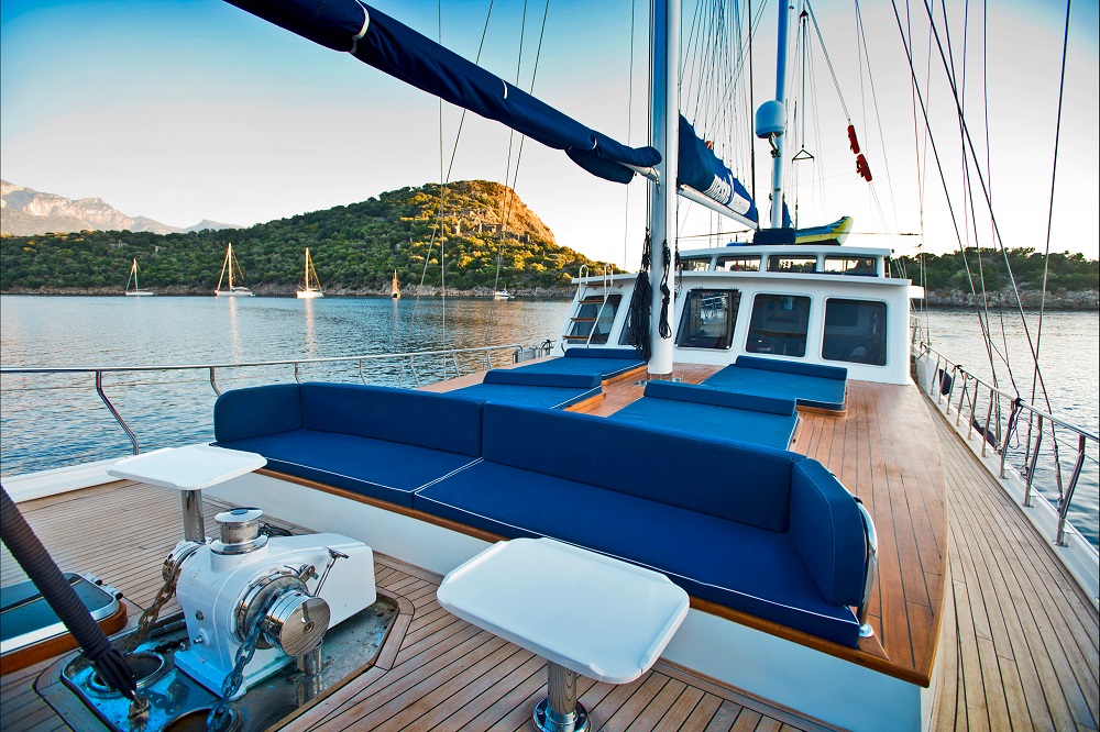 Unsere 24 m lange Gulet Maske 1 wurde 2014 gebaut. Ihre endgültige Form erhielt sie mit der Renovierung und Sanierung, die sie 2017 durchlief. Unser Boot verfügt über 5 Kabinen, 1 Master- und 4 Doppelkabinen, jede stilvoller und komfortabler, mit eigener Dusche, WC und Klimaanlage. 3 Es gibt separate Wohnbereiche, eine voll ausgestattete Küche, Essbereiche im Innen- und Außenbereich sowie Ruhebereiche für die Besatzung. Es gibt Sonnenkissen, Stühle und Serviersets in ausreichender Menge für alle Gäste. Dank seiner vollwertigen Radio-, GSM-Telefon- und Navigationsausrüstung ist die Gulet Maske 1; Bodrum, Göcek, Marmaris, Fethiye usw. Sie können sicher zu unseren Zielen der Blauen Kreuzfahrt segeln.