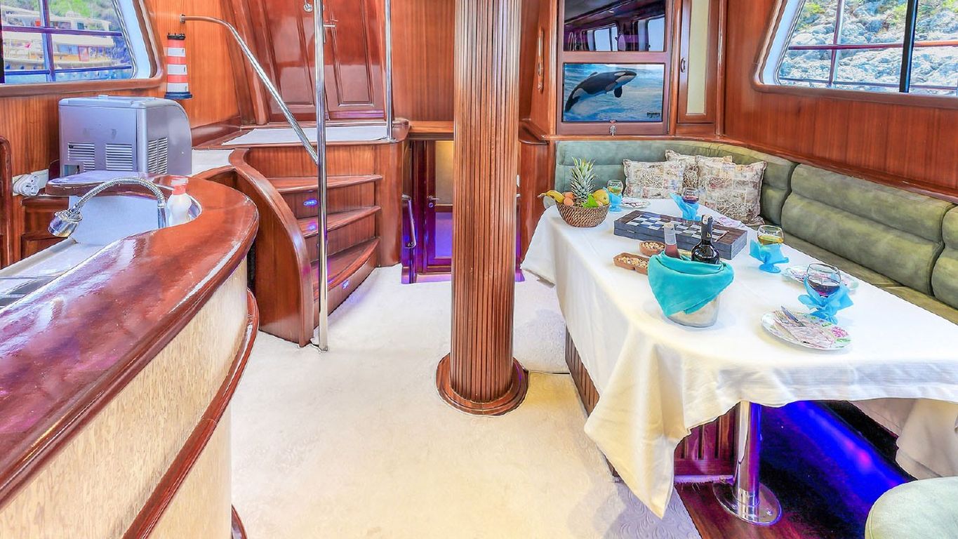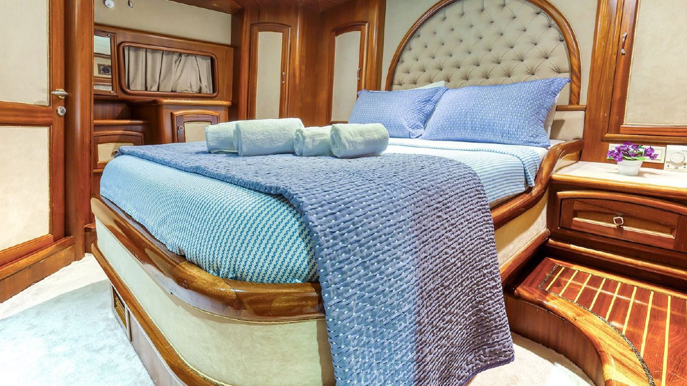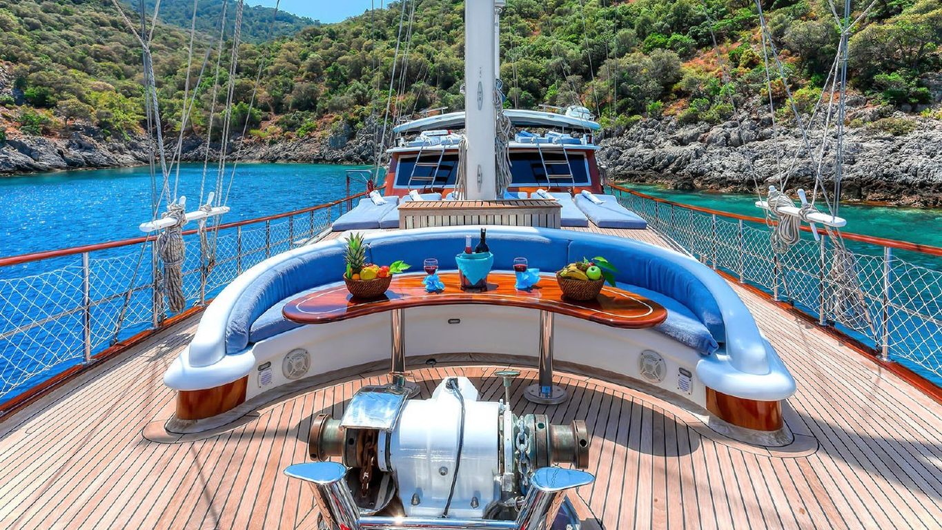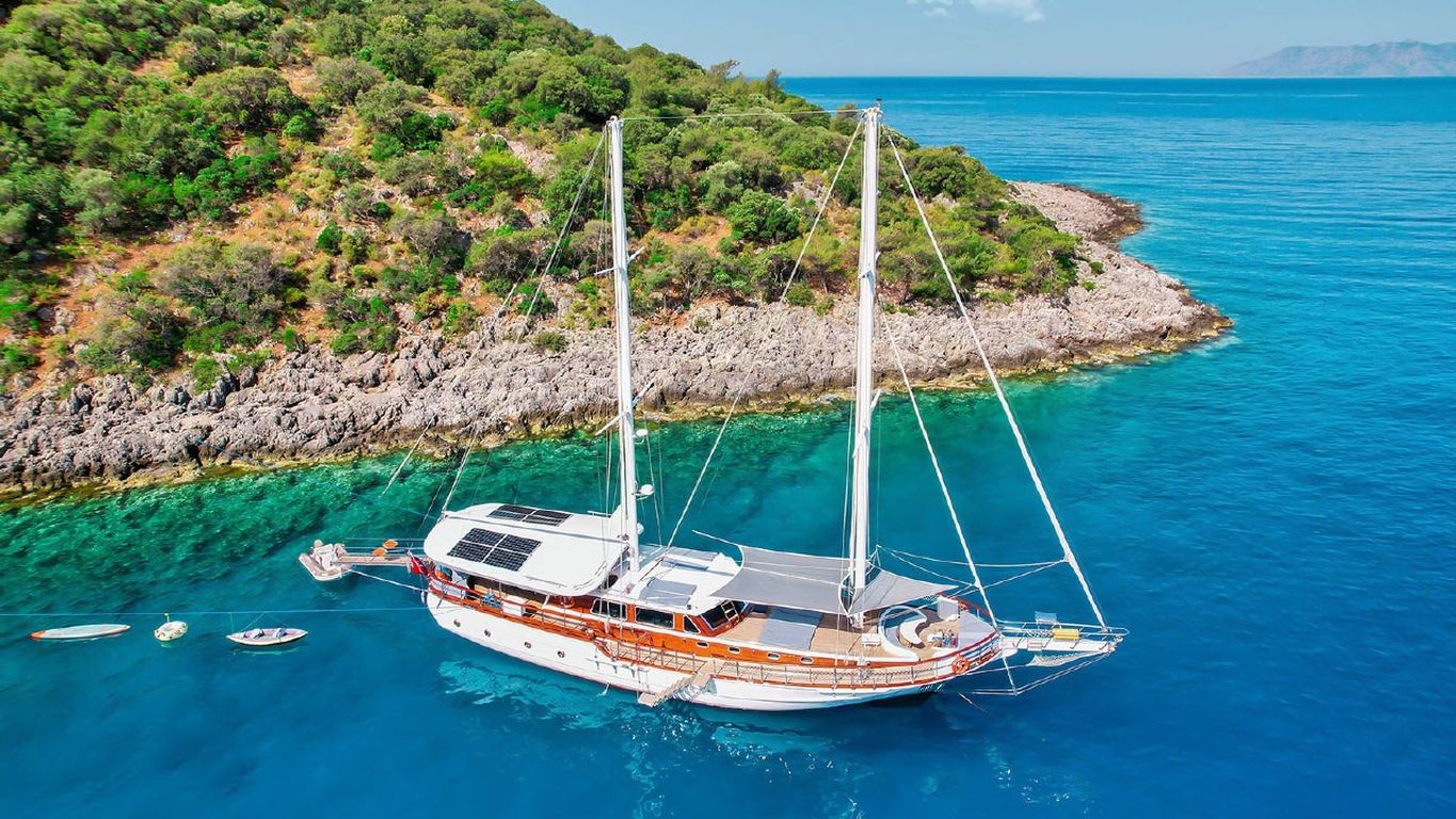 | Die Gulet Mehmet Ayaz ist eine 24 Meter lange Gulet, gebaut 2008 und 2019 renoviert. Sie vereint Komfort, Stil und Eleganz auf See. Mit fünf Kabinen – zwei Master- und drei Doppelzimmern – bietet sie Platz für bis zu zehn Gäste. Die 6,60 Meter Breite sorgt für geräumige Innen- und Außenbereiche. An Deck gibt es schattige Essbereiche, gepolsterte Sitze und große Sonnenzonen. Der Innenraum verfügt über einen Salon mit Esstisch, Sitzgruppe und gut ausgestatteter Küche. Für Wasseraktivitäten bietet Mehmet Ayaz ein 30 PS Beiboot, Stand-up-Paddleboards, Wasserski, Ringo, Kanus, Schnorchel- und Angelausrüstung. Angetrieben wird sie von zwei 280 PS Delphin-Motoren und zwei Generatoren (22,5 + 9 kVA), die eine Geschwindigkeit von 8 Knoten ermöglichen. Klimaanlage: 6 Stunden täglich, Stromsysteme 12V/24V/220V. Die Mehmet Ayaz ist ideal für Familien oder kleine Gruppen, die eine entspannte und zugleich aktive Blaue Reise entlang der türkisen Buchten erleben möchten. |