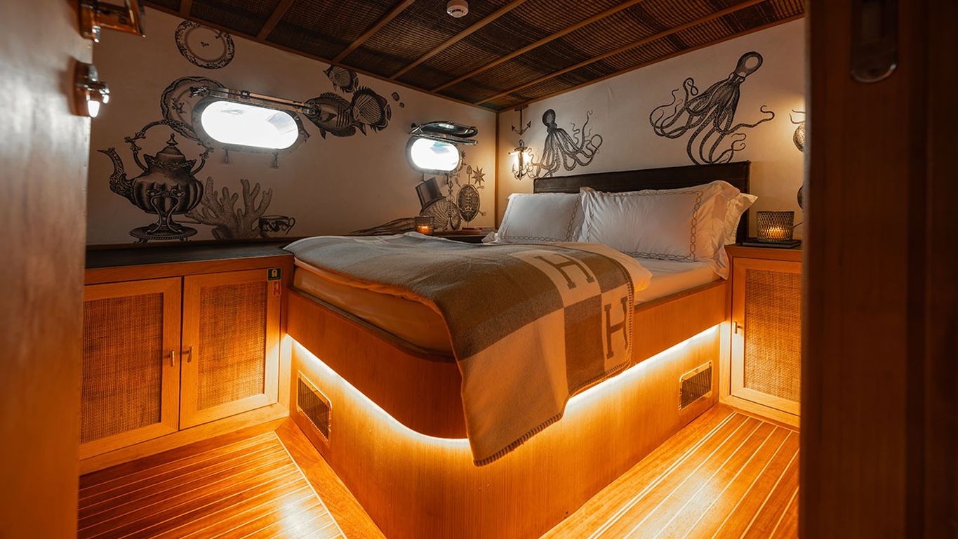 | Die Gulet My Lover ist eine elegante, 27 Meter lange Gulet, gebaut 2001 und 2023 vollständig renoviert. Mit fünf Kabinen – einer Master- und vier Doppelkabinen – bietet sie Platz für bis zu zehn Gäste. Ihre 6,50 Meter Breite sorgt für komfortable Innenräume und großzügige Decksflächen. An Bord können Gäste auf gepolsterten Sonnenliegen entspannen, im schattigen Außenbereich speisen oder im gemütlichen Salon mit Ess- und Sitzecken verweilen. Für Wassersport bietet die My Lover ein 60 PS Beiboot, Wakeboard, Schnorchel- und Angelausrüstung – ideal für Spaß auf dem Meer. Angetrieben von einem 380 PS Iveco-Motor und zwei 27,5 kVA Generatoren, erreicht sie eine Geschwindigkeit von 11 Knoten. Klimaanlage ist rund um die Uhr verfügbar, Stromsysteme 12V/24V/220V. Die My Lover ist ideal für Gäste, die eine moderne, komfortable Gulet mit Wassersport und eleganter Ausstattung suchen. |