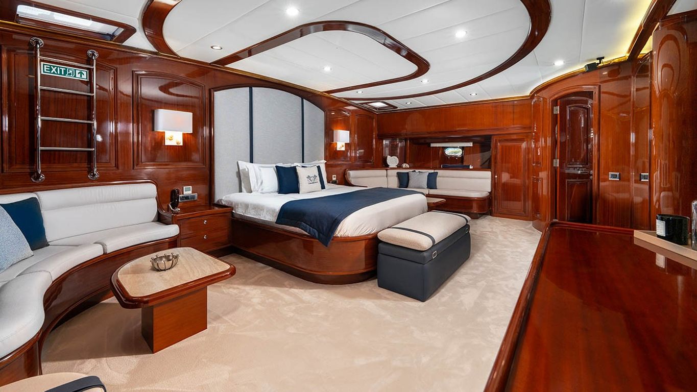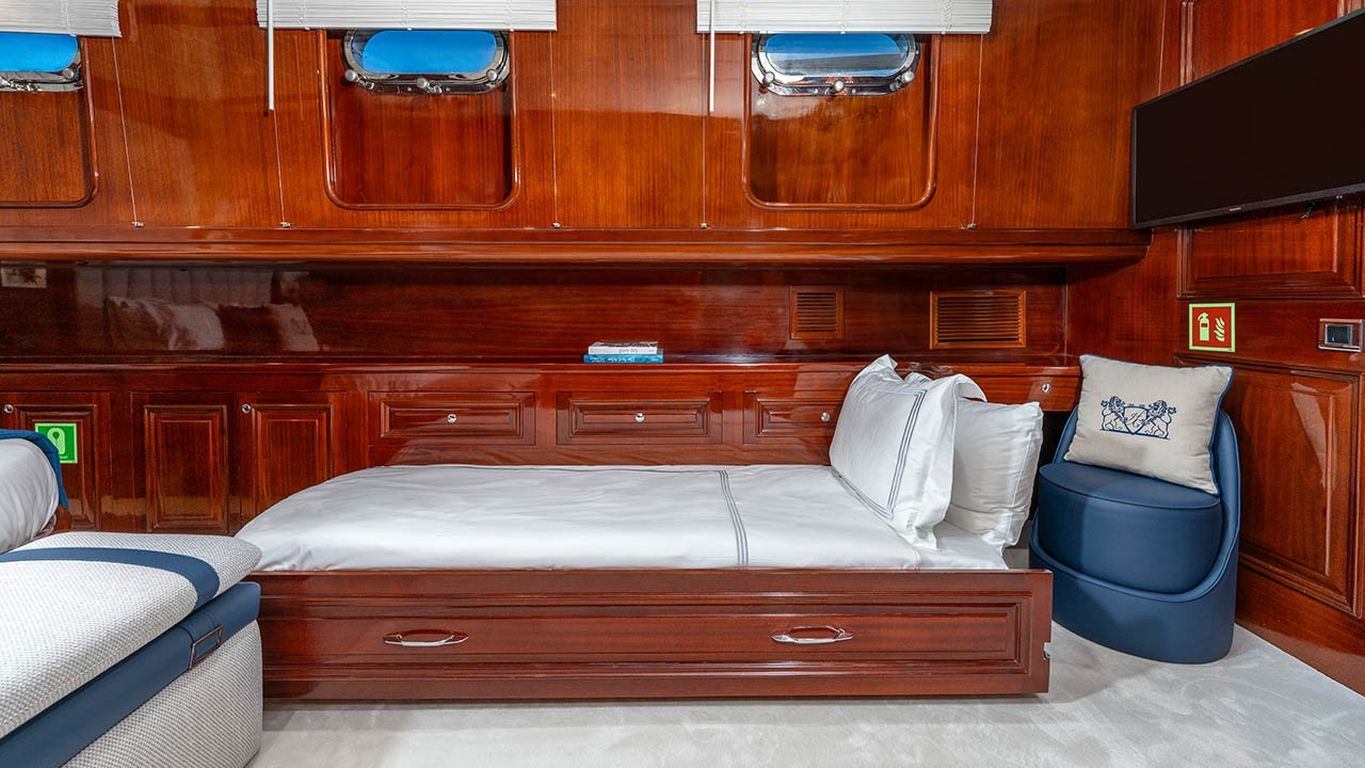 | Die Gulet Performance Fee ist eine 38 Meter lange Deluxe-Yacht, ursprünglich 2011 gebaut und 2024 vollständig renoviert. Mit fünf Kabinen – zwei Master- und drei Doppelkabinen – bietet sie Platz für bis zu zehn Gäste. Ihre 8,77 Meter Breite sorgt für großzügige Innenräume und weitläufige Außendecks. Das Deck wurde für maximalen Komfort konzipiert und bietet Sonnenliegen, schattige Sitzbereiche und einen Esstisch im Freien. Der Salon ist modern eingerichtet und verfügt über einen Essbereich sowie eine gemütliche Lounge. Für Wassersport bietet die Performance Fee eine umfangreiche Ausstattung: Ein 150 PS Beiboot, Stand-up-Paddleboards, Wasserski, Wakeboards, Ringos, Bananas, Kanus, Schnorchel- und Angelausrüstung. Angetrieben wird sie von zwei 550 PS Volvo-Motoren und zwei 40 kVA Generatoren, was eine Reisegeschwindigkeit von 12 Knoten ermöglicht. Die Klimaanlage ist rund um die Uhr verfügbar, Stromsysteme 12V/24V/220V. Die Performance Fee ist die ideale Wahl für Familien und Gruppen, die Luxus, Komfort und aktive Wasserabenteuer auf einer Blauen Reise kombinieren möchten. |