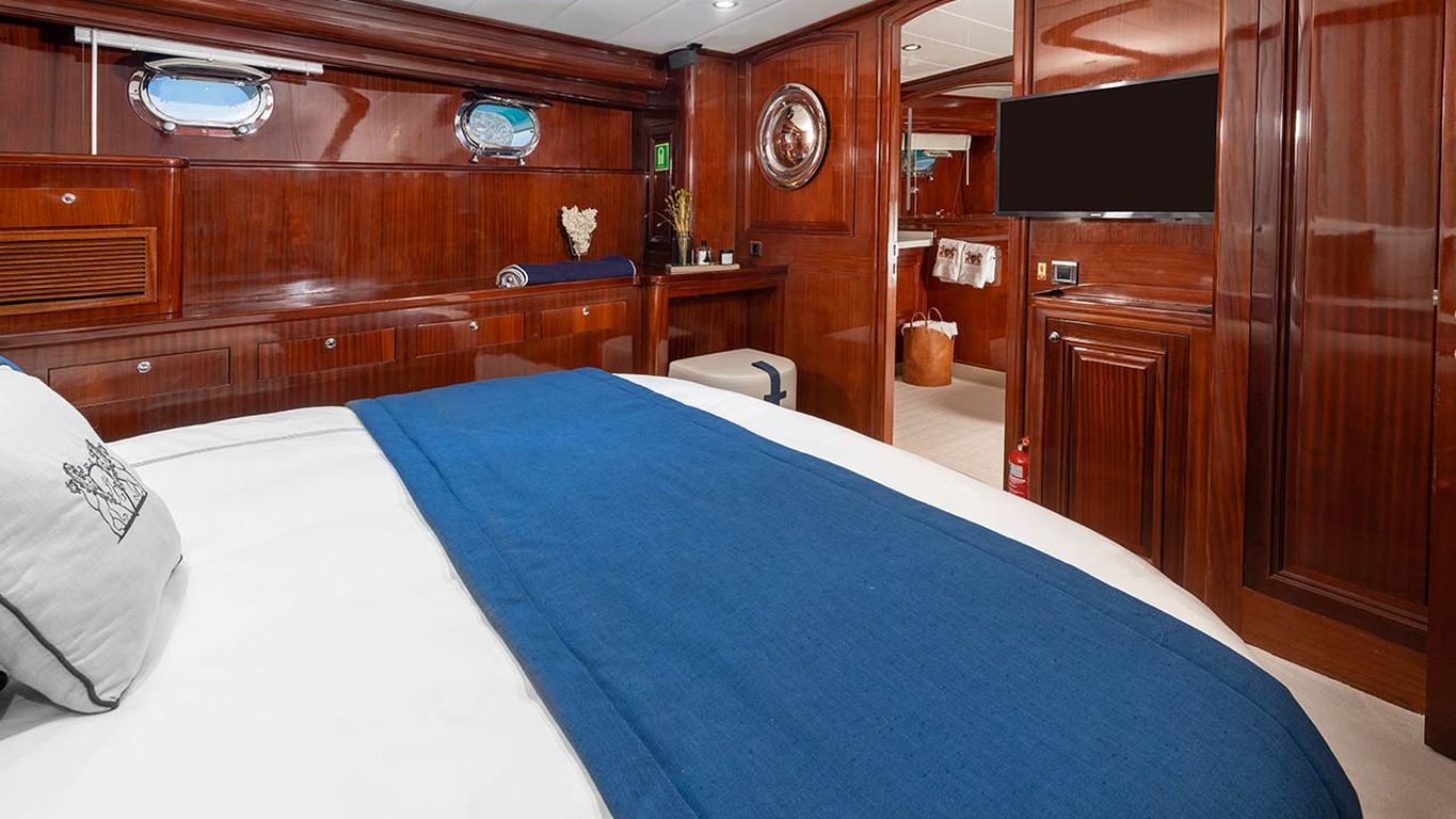 | Jusqu'à 12 personnes; 2 cabines principales, 3 cabines doubles, cabine de douche et toilettes dans toutes les cabines, cabines d'équipage séparées. |