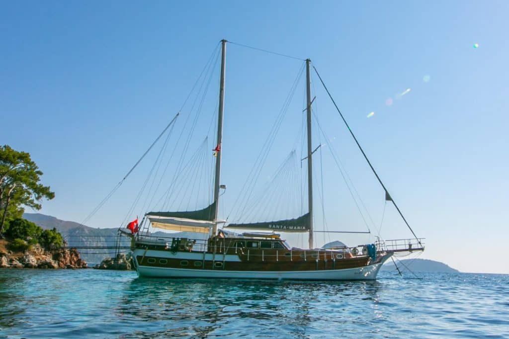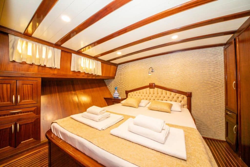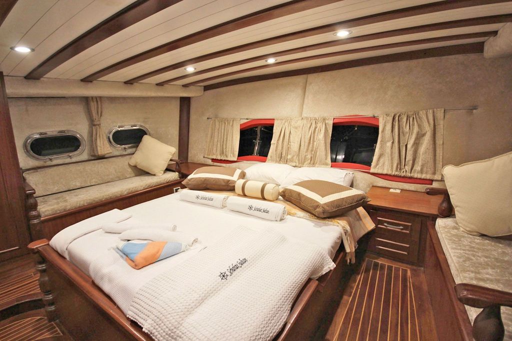 Unsere 23,90 m lange Gulet Santa Maria wurde 2008 gebaut. Ihre endgültige Form erhielt sie mit der Renovierung und Sanierung, die sie 2019 durchlief. Unser Boot verfügt über 5 Kabinen, 2 Master- und 3 Doppelkabinen, jede stilvoller und komfortabler als die andere, mit eigener Dusche, WC und Klimaanlage. 3 Es gibt separate Wohnbereiche, eine voll ausgestattete Küche, Essbereiche im Innen- und Außenbereich sowie Ruhebereiche für die Crew. Es gibt ausreichend Sonnenkissen, Stühle und Serviersets für alle Gäste. Die Gulet Santa Maria verfügt dank ihrer vollwertigen Radio-, GSM-Telefon- und Navigationsausrüstung; Bodrum, Göcek, Marmaris, Fethiye usw. Sie können sicher zu unseren Zielen der Blauen Kreuzfahrt segeln.