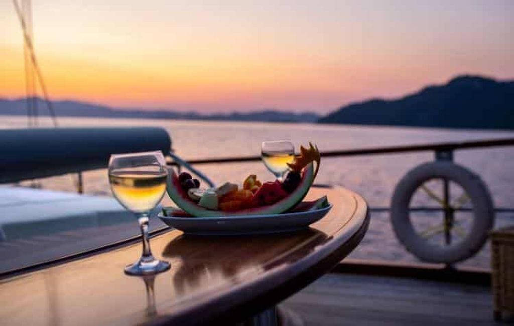 LCD-Fernseher, DVD-Player und Stereoanlage stehen unseren geschätzten Gästen der Blauen Reise in der Lounge unserer Gulet zur Verfügung. Wassersportarten wie Kanufahren, Tauchen und Windsurfen stehen unseren Gästen auf Wunsch optional zur Verfügung. Unser Boot bietet unseren Passagieren, die die Blaue Reise in den unberührten Buchten der Türkei genießen möchten, auch Unterhaltung und die Möglichkeit, sich auf dem Boot zu entspannen. Gulet Santa Maria ist bereit, unsere geschätzten Gäste willkommen zu heißen, die erwägen, ein Gulet für eine Woche in den Regionen Bodrum, Göcek, Fethiye, Marmaris oder Gökova zu mieten.