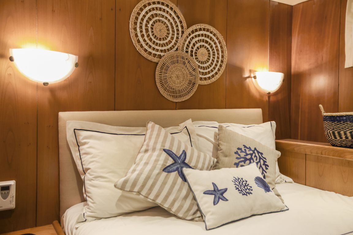 Unsere 30 m lange Gulet Aegean Schatz wurde 2005 gebaut. Ihre endgültige Form erhielt sie mit der Renovierung und Sanierung, die sie 2013 durchlief. Unser Boot verfügt über 5 Kabinen: 2 Master, 2 Double und 1 Twin-Kabinen, jede stilvoller und komfortabler als die andere, mit eigener Dusche, WC und Klimaanlage. 3 Es gibt separate Wohnbereiche, eine voll ausgestattete Küche, Essbereiche im Innen und Außenbereich sowie Ruhebereiche für die Besatzung. Es gibt ausreichend Sonnenkissen, Stühle und Serviersets für alle Gäste. Dank seiner vollwertigen Radio, GSM-Telefon und Navigationsausrüstung bietet die Gulet Aegean Schatz; Bodrum, Göcek, Marmaris, Fethiye usw. Sie können sicher zu unseren Zielen der Blauen Kreuzfahrt segeln.