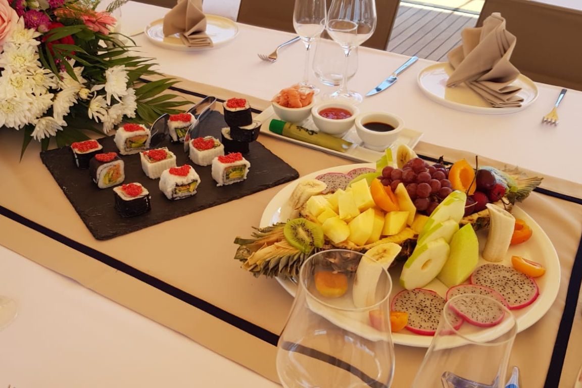 LCD-Fernseher, DVD-Player und Stereoanlage stehen unseren geschätzten Gästen der Blauen Reise in der Lounge unserer Gulet zur Verfügung. Wassersportarten wie Kanufahren, Tauchen und Windsurfen stehen unseren Gästen auf Wunsch optional zur Verfügung. Unser Boot Aegean Schatz bietet unseren Passagieren, die die Blaue Reise in den unberührten Buchten der Türkei genießen möchten, auch Unterhaltung und die Möglichkeit, auf dem Boot zu entspannen. Gulet Aegean Schatz ist bereit, unsere geschätzten Gäste willkommen zu heißen, die erwägen, eine wöchentliche Gulet in den Regionen Bodrum, Göcek, Fethiye, Marmaris oder Gökova zu mieten.