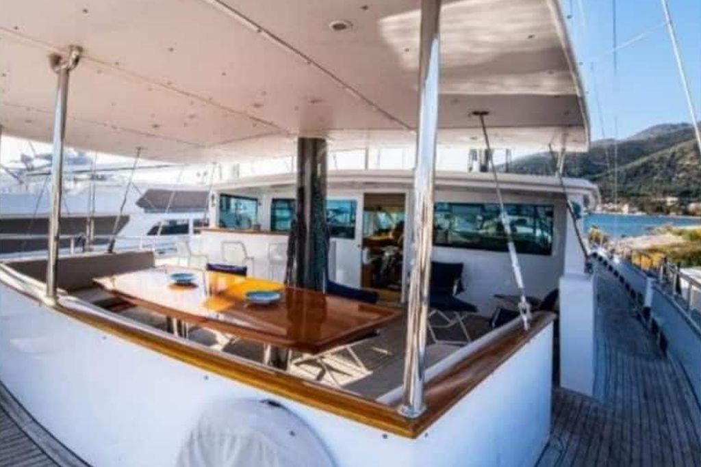 70 PS-Beiboot – 9,9 PS-Serviceboot, Wasserski, Ringo, Kanu, Schnorchelausrüstung, Angelausrüstung, Sonnenmatratzen, Deckdusche, TV/DVD, UKW-Radio, Musikanlage, WLAN-Internetanschluss, Eismaschine, Wasseraufbereitungsanlage, Deck mit Essbereich, Innenesszimmer, Klimaanlage, Vollständige Sicherheitsausrüstung, Navigationsausrüstung, Küchenausstattung, Radar, GPS, Kompass, Autopilot, Kartenplotter |
