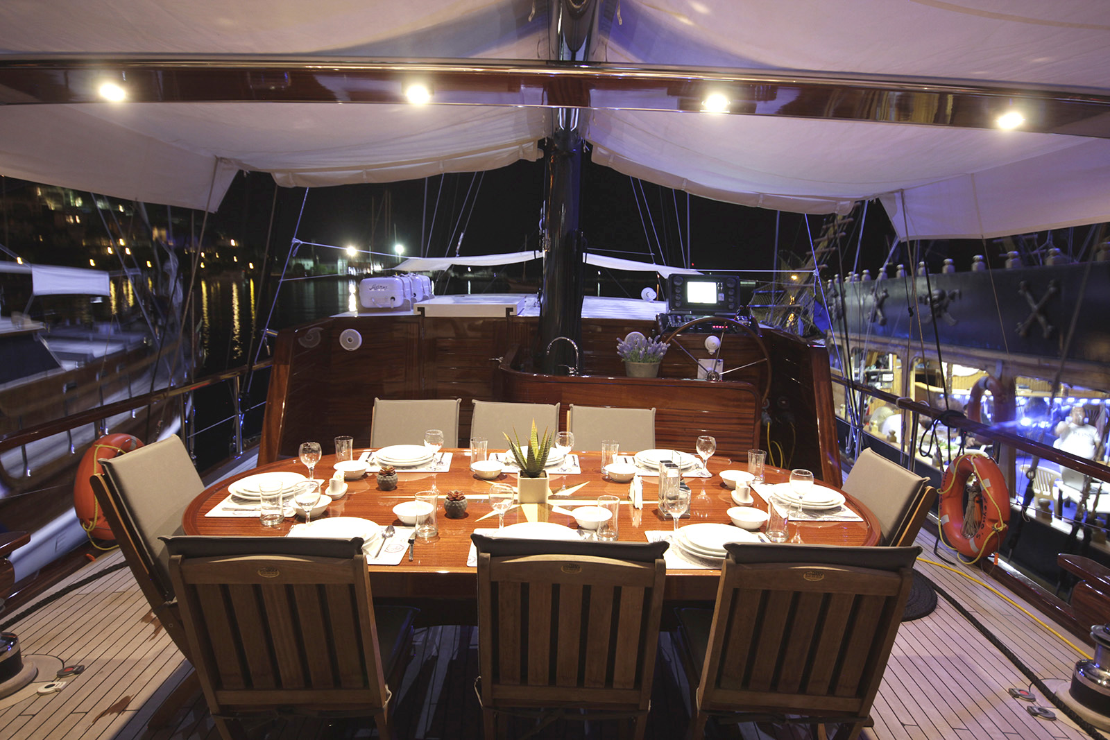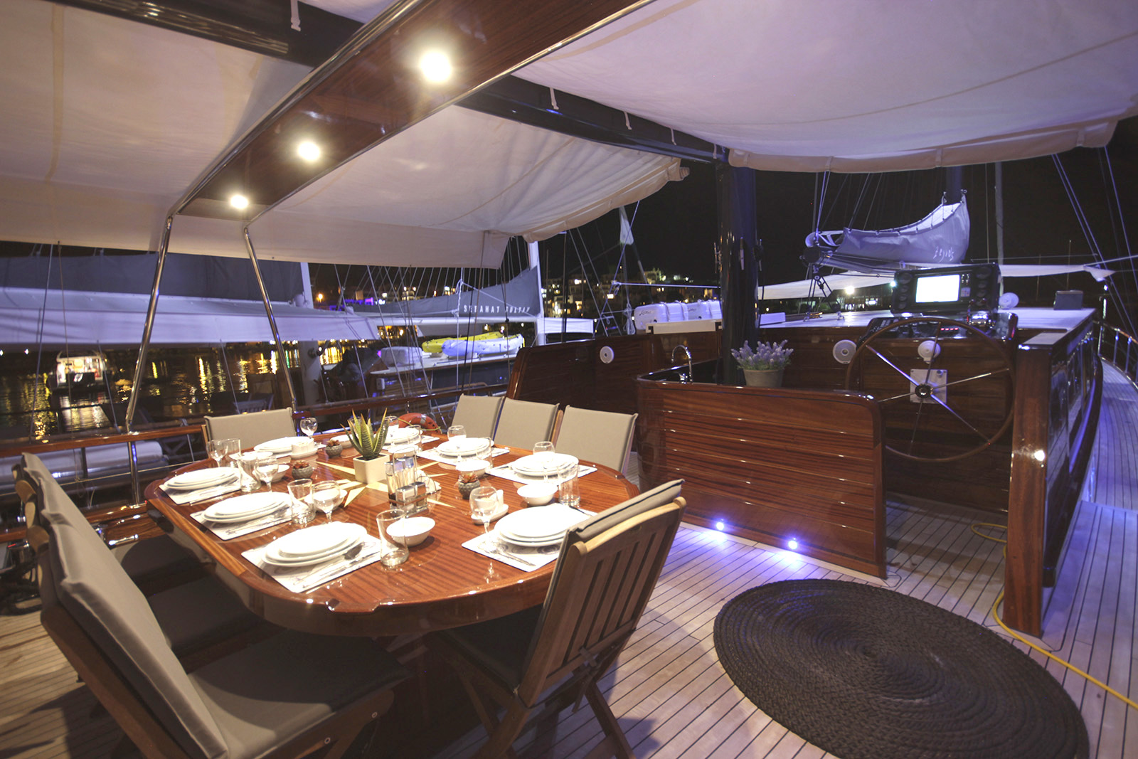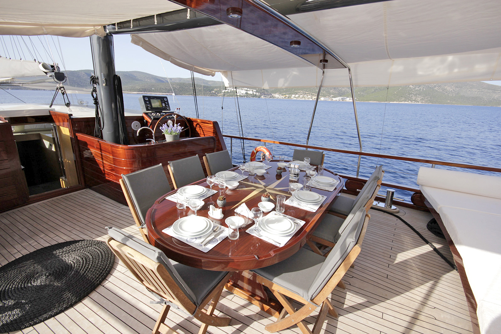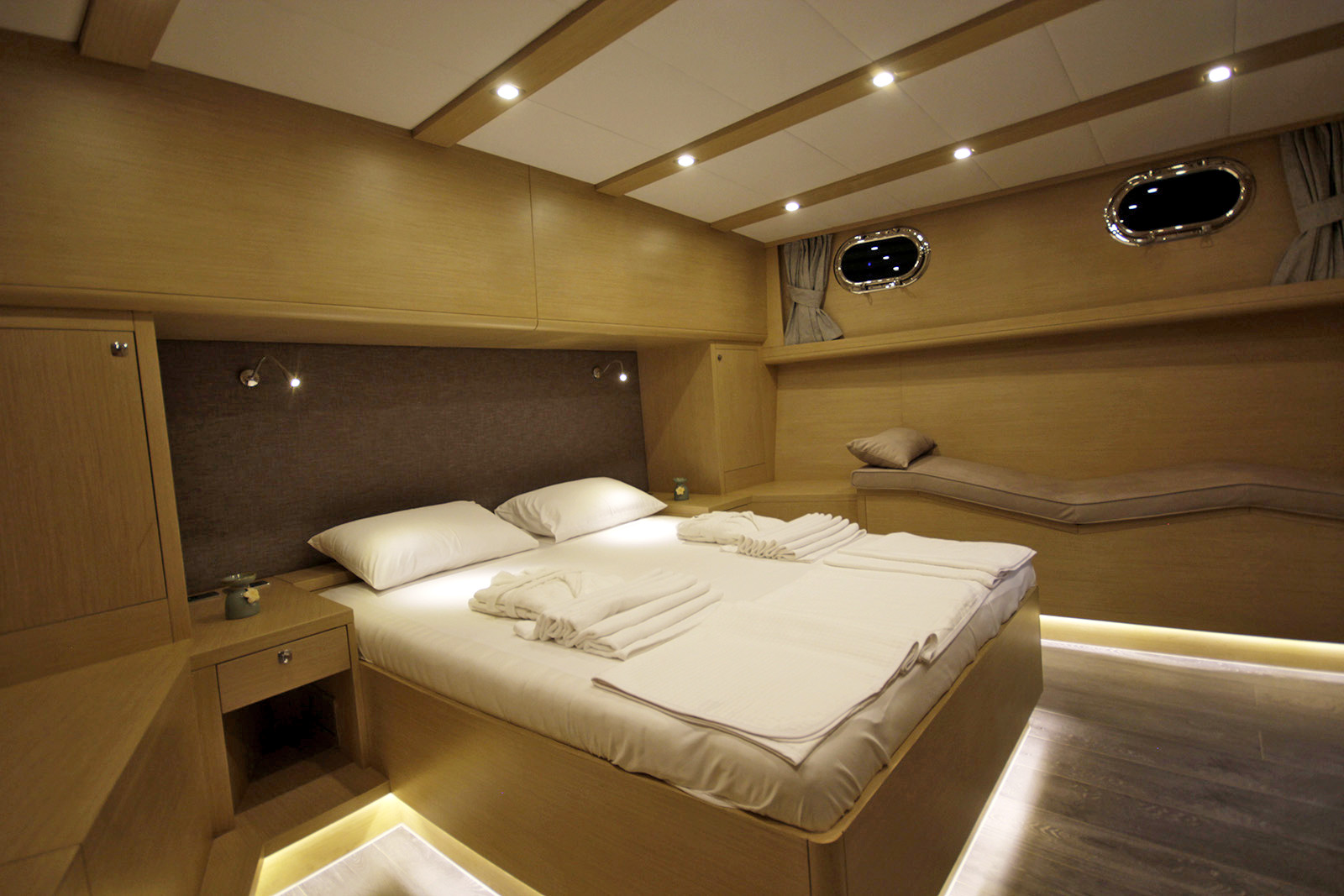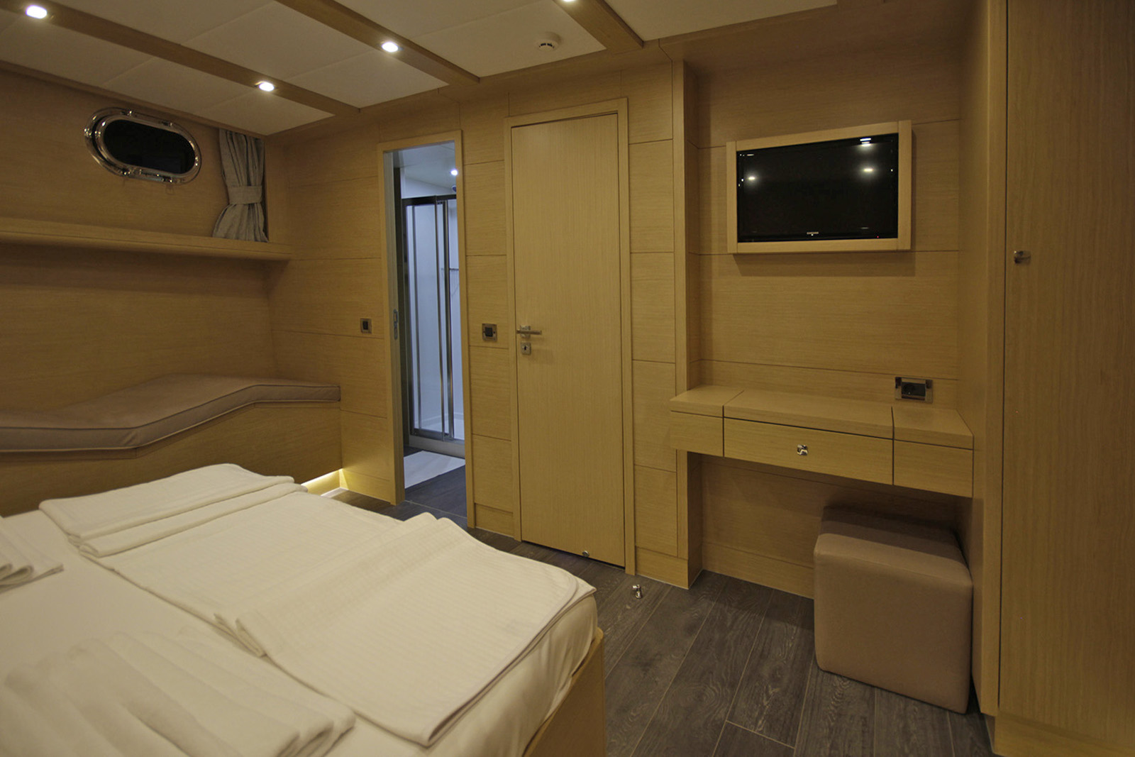 Unser 24 m langes Gulet Zeynos wurde 2015 gebaut. Unser Boot verfügt über 5 Kabinen, darunter 2 Master-, 1 Doppel- und 2 Dreibettkabinen, jede stilvoller und komfortabler, mit eigener Dusche, WC und Klimaanlage. 3 Es gibt separate Wohnbereiche, eine voll ausgestattete Küche, Essbereiche im Innen- und Außenbereich sowie Ruhebereiche für die Besatzung. Es gibt ausreichend Sonnenkissen, Stühle und Serviersets für alle Gäste. Gulet Zeynos verfügt dank seiner vollwertigen Radio-, GSM-Telefon-Navigationsausrüstung; Bodrum, Göcek, Marmaris, Fethiye usw. Sie können sicher zu unseren Zielen der Blauen Kreuzfahrt segeln.