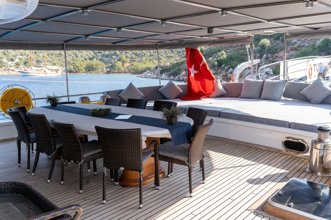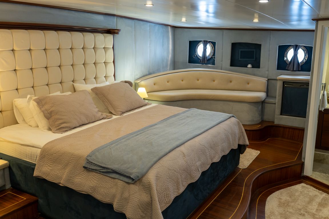 Die Gulet Bella Mare wurde 2008 gebaut und 2018 nach den neuesten Technologien renoviert. Sie bietet Ihnen eine Blaue Reise mit einer Länge von 38 Metern. Es gibt 6 Doppelkabinen, jede mit eigener Dusche, WC und Klimaanlage. Sie können mit unserem Boot Bella Mare eine angenehme und unterhaltsame Blaue Kreuzfahrt auf allen Routen von Bodrum, Göcek, Marmaris und Fethiye planen. Unser Boot Bella Mare verfügt über separate Essbereiche auf dem Deck und in der Lounge, eine voll ausgestattete Küche, eine amerikanische Bar und separate Wohnbereiche für die Crew. Auf dem Deck gibt es Sonnenbereiche, auf denen 12 Personen bequem sonnenbaden können.