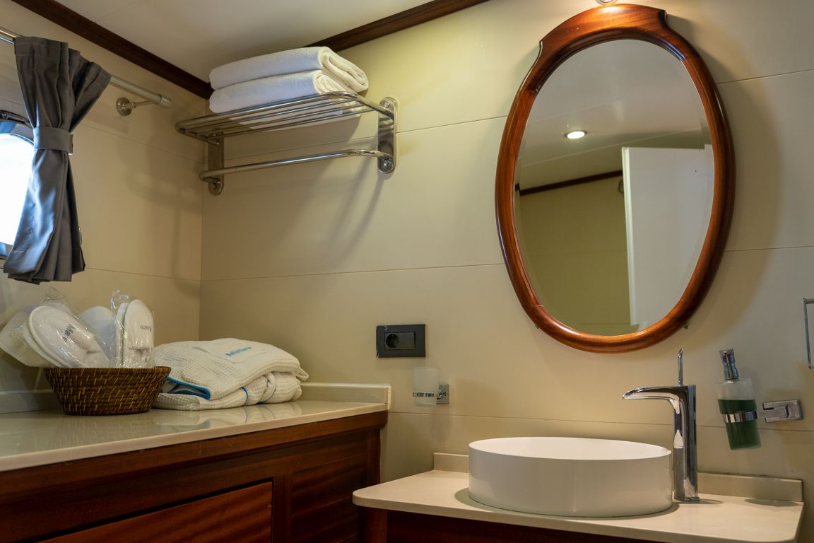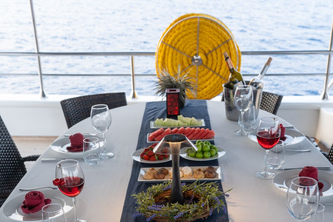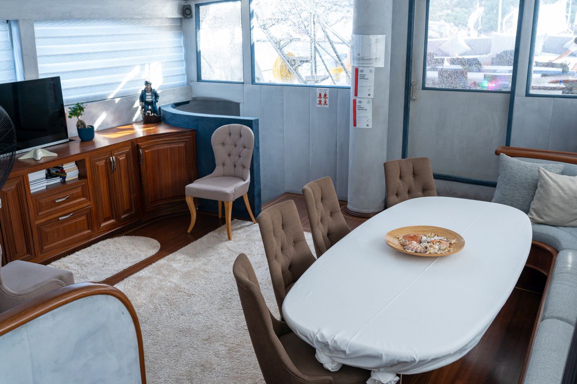 Es gibt Kanus, Schnorchel, Masken, Flossen und einfache Angelausrüstung, um die Zeit auf See angenehmer zu gestalten, und um die Zeit auf dem Deck unterhaltsamer zu gestalten, gibt es ein Rommé-Set, Backgammon, Spielkarten, einen DVD-Player, ein Musiksystem und eine Klimaanlage. Unser erfahrenes Personal auf dem Boot steht Ihnen bei der Zubereitung von Speisen, dem Service, der täglichen Reinigung und allen Angelegenheiten, die Sie während der Blauen Reise benötigen, zur Verfügung. Der Kapitän und die Crew, die über Segelerfahrung verfügen, werden segeln, wenn das Wetter es zulässt, und Sie können das Vergnügen einer Blauen Segelkreuzfahrt in der Ägäis erleben. Um eine preiswerte und angenehme Blaue Kreuzfahrt in türkischen Hoheitsgewässern zu erleben, laden wir Sie zu einer Blauen Reise mit unserer Bella Mare-Gulet ein.