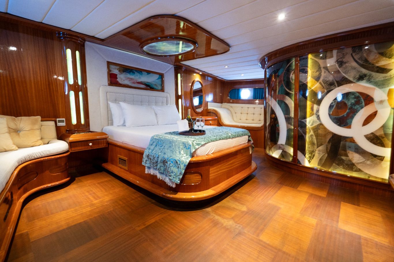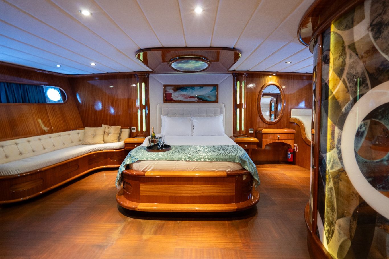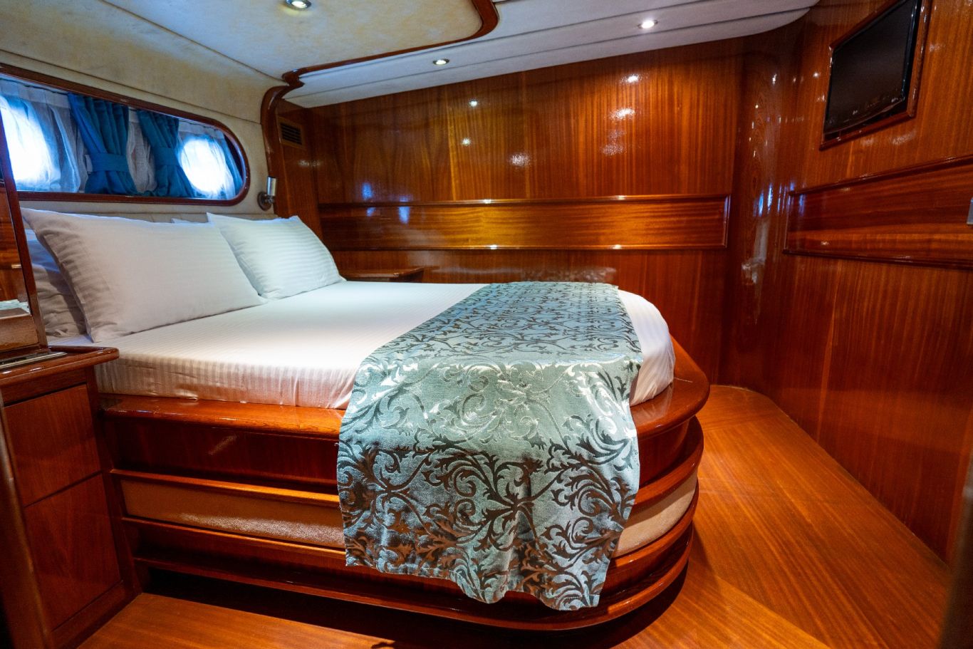 Bis zu 12 Gäste; 6 Kabinen; 2 Master und 4 Doppelkabinen für bis zu 12 Gäste. Jede Kabine ist voll klimatisiert, hat einen Kleiderschrank und ein eigenes Badezimmer mit Duschkabine und Haushaltstoilette. |