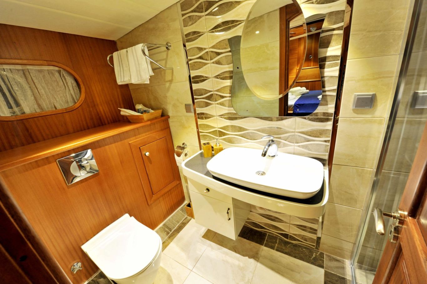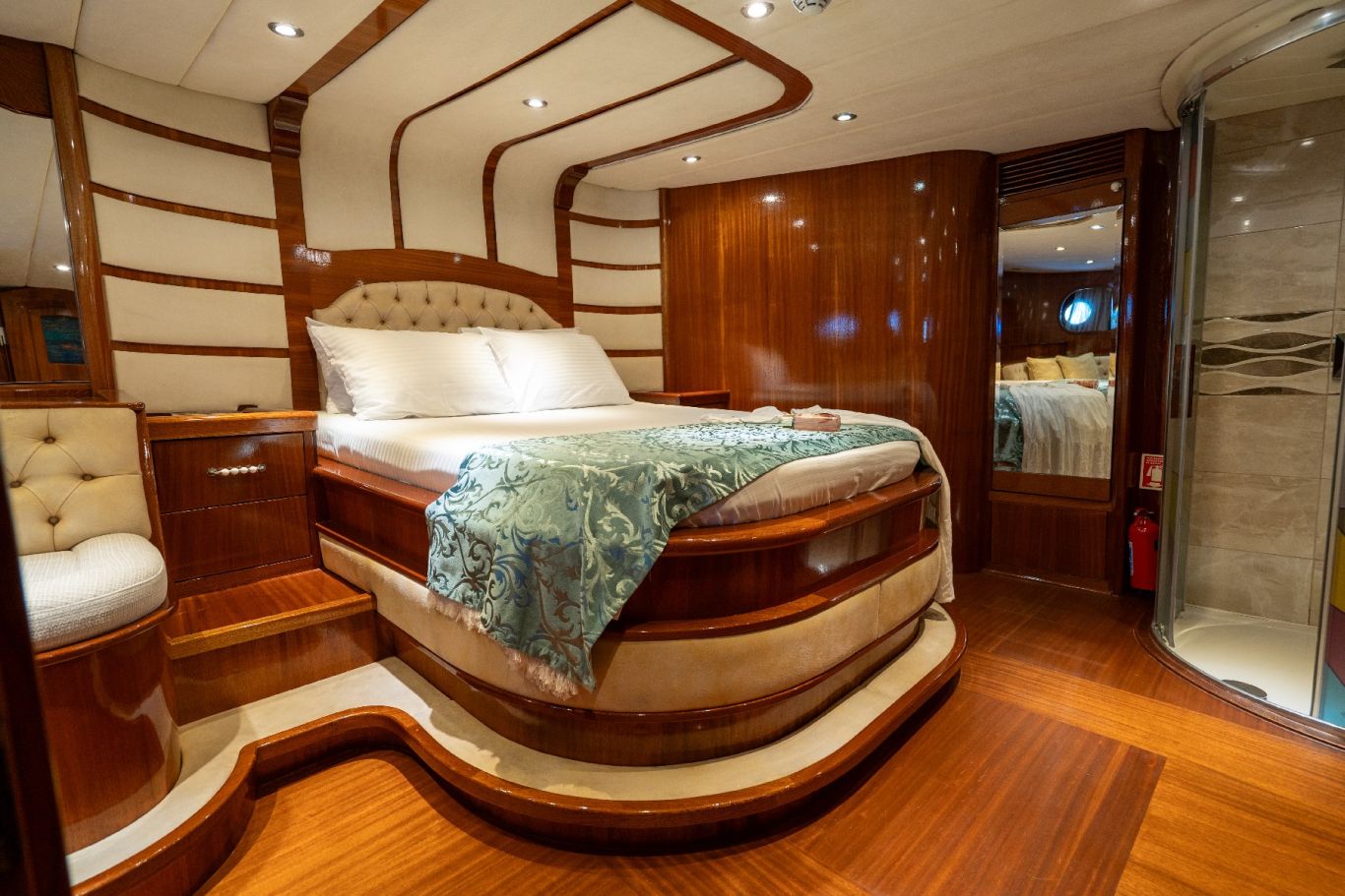 Das Gulet Berrak Su wurde 2008 gebaut und 2010, 2014 und 2017 nach neuen Technologien renoviert. Es bietet Ihnen eine Blaue Reise mit einer Länge von 33 Metern. Es gibt 6 Doppelkabinen, jede mit eigener Dusche, WC und Klimaanlage. Sie können mit unserem Boot Berrak Su eine angenehme und unterhaltsame Blaue Reise auf einer der Routen Bodrum, Göcek, Marmaris und Fethiye planen. Unser Boot Berrak Su verfügt über separate Essbereiche auf dem Deck und in der Lounge, eine voll ausgestattete Küche, eine amerikanische Bar und separate Wohnbereiche für die Besatzung. Auf dem Deck gibt es Sonnenbereiche, auf denen 12 Personen bequem sonnenbaden können. Es gibt Kanus, Schnorchel, Masken, Flossen und einfache Angelausrüstung, um die Zeit auf See angenehmer zu gestalten, und um die Zeit auf dem Deck unterhaltsamer zu gestalten, gibt es ein Rommé-Set, Backgammon, Spielkarten, einen DVD-Player, ein Musiksystem und eine Klimaanlage. Unser erfahrenes Personal auf dem Boot steht Ihnen bei der Zubereitung von Speisen, dem Service, der täglichen Reinigung und allen Angelegenheiten, die Sie während der Blauen Reise benötigen, zur Verfügung. Der Kapitän und die Besatzung, die über Segelerfahrung verfügen, werden segeln, wenn das Wetter es zulässt, und Sie können das Vergnügen einer Segel-Blauen-Kreuzfahrt in der Ägäis erleben. Um eine preiswerte und angenehme Blaue Tour in türkischen Hoheitsgewässern zu erleben, laden wir Sie zu einer Blauen Reise mit unserer Gulet Berrak Su ein. |