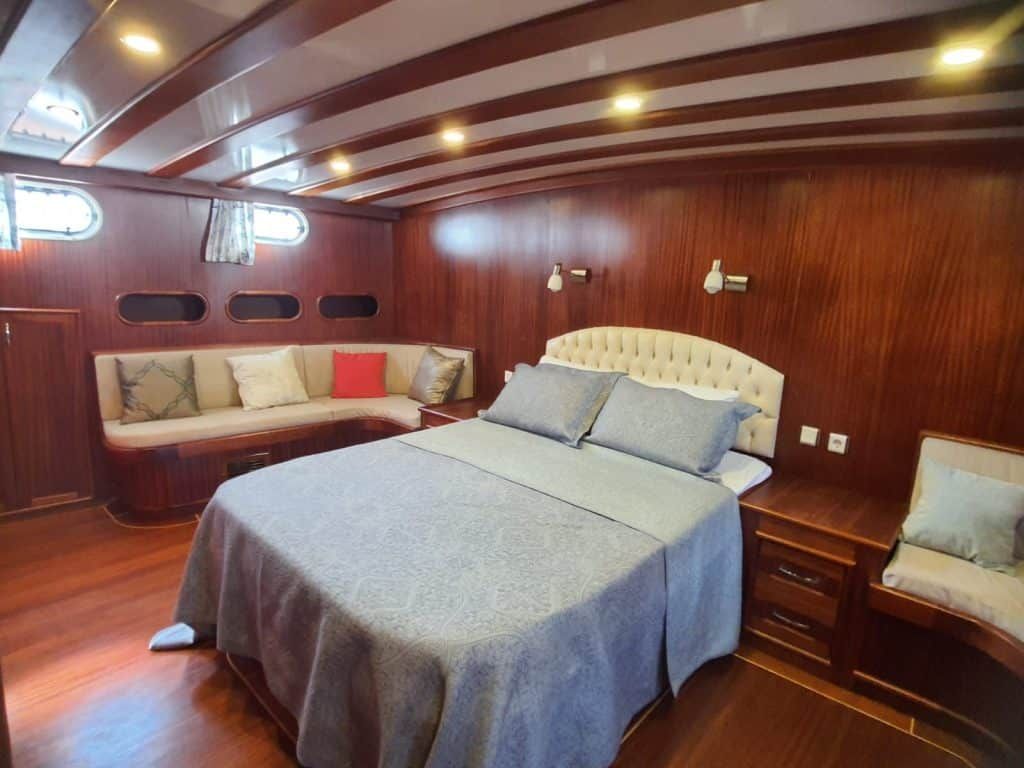 Das Gulet Cagan wurde 2015 gebaut. Es bietet Ihnen eine 30 Meter lange Blaue Reise. Es gibt 6 Doppelkabinen, jede mit eigener Dusche, WC und Klimaanlage. Sie können mit unserem Cagan-Boot eine angenehme und unterhaltsame Blaue Reise auf einer der Routen Bodrum, Göcek, Marmaris und Fethiye planen. Unser Cagan-Boot verfügt über separate Essbereiche auf dem Deck und in der Lounge, eine voll ausgestattete Küche, eine amerikanische Bar und separate Wohnbereiche für die Crew. Auf dem Deck gibt es Sonnenbereiche, auf denen 12 Personen bequem sonnenbaden können.