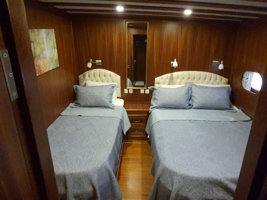Es gibt Kanus, Schnorchel, Masken, Flossen und einfache Angelausrüstung, um die Zeit auf See angenehmer zu gestalten, und um die Zeit auf dem Deck unterhaltsamer zu gestalten, gibt es ein Rommé-Set, Backgammon, Spielkarten, einen DVD-Player, ein Musiksystem und eine Klimaanlage. Unser erfahrenes Personal auf dem Boot steht Ihnen bei der Zubereitung von Speisen, dem Service, der täglichen Reinigung und allen Angelegenheiten, die Sie während der Blauen Reise benötigen, zur Verfügung. Der Kapitän und die Besatzung, die über Segelerfahrung verfügen, werden segeln, wenn das Wetter es zulässt, und Sie können das Vergnügen einer Segel-Blauen-Kreuzfahrt in der Ägäis erleben. Um eine preiswerte und angenehme Blaue Tour in türkischen Hoheitsgewässern zu erleben, laden wir Sie zu einer Blauen Reise mit unserer Cagan-Gulet ein.