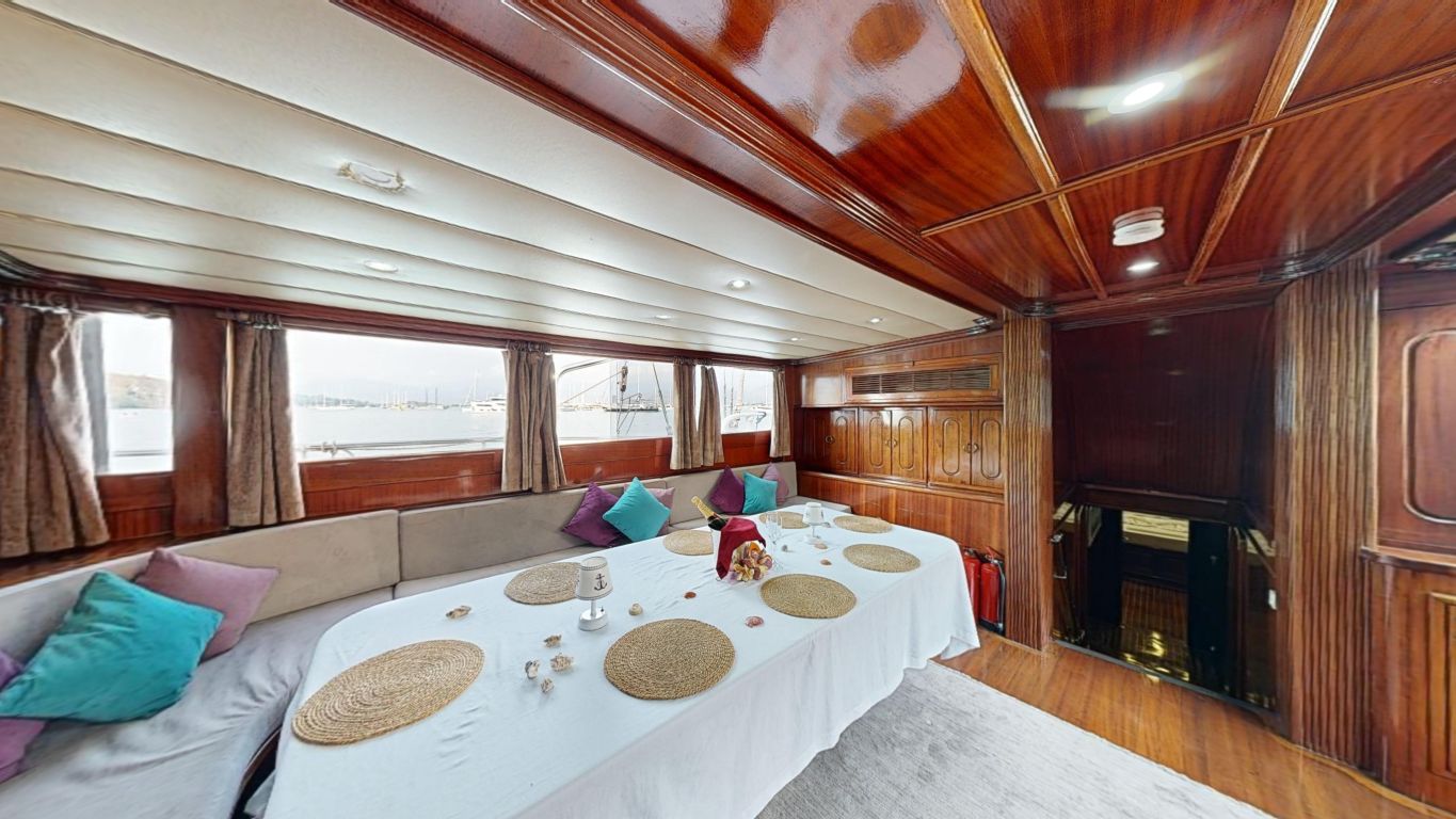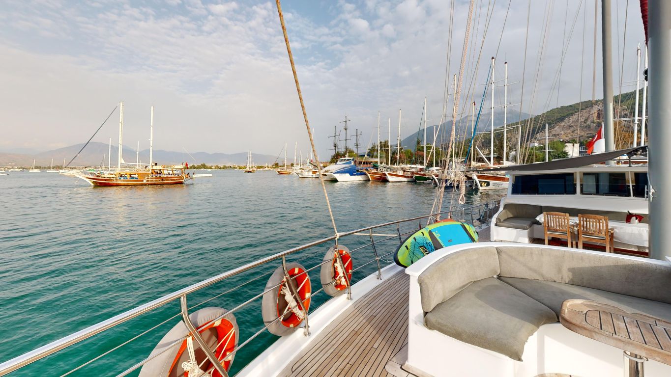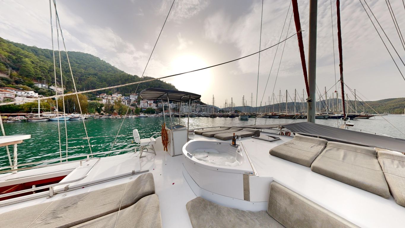 Das Gulet Diamond Lila wurde 2007 gebaut und 2019 nach neuen Technologien renoviert. Es bietet Ihnen eine 30 Meter lange Blaue Reise. Es gibt 6 Doppelkabinen, jede mit eigener Dusche, WC und Klimaanlage. Mit unserem Boot Diamond Lila können Sie eine angenehme und unterhaltsame Blaue Reise auf einer der Routen Bodrum, Göcek, Marmaris und Fethiye planen. Unser Boot Diamond Lila verfügt über separate Essbereiche auf dem Deck und in der Lounge, eine voll ausgestattete Küche, eine amerikanische Bar und separate Wohnbereiche für die Crew. Auf dem Deck gibt es Sonnenbereiche, auf denen 12 Personen bequem sonnenbaden können.