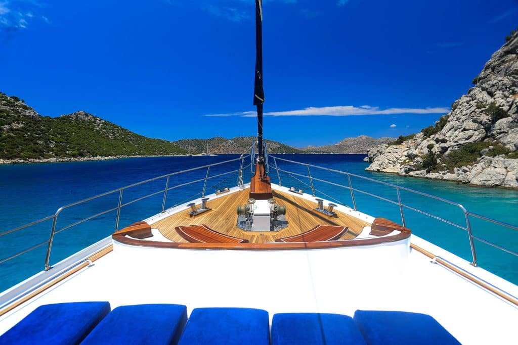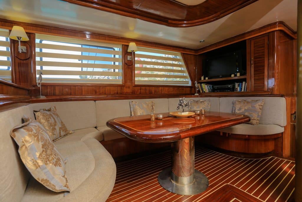 Diese 29 m lange Luxus-Gulet Diva Deniz wurde 2020/2021 komplett renoviert. Wir bieten komfortable Unterbringung für bis zu 12 Gäste in zwei großen Masterkabinen, zwei Doppelkabinen und zwei Twinkabinen. Jede Kabine verfügt über eine eigene Toilette und Dusche. Alle Kabinen, einschließlich der Lounge, sind klimatisiert und können bis zu 12 Stunden am Tag genutzt werden. Sonnenliegen und Sonnenschirme vorne und hinten auf der Yacht sowie ein stilvoll gestalteter Entspannungs- und Essbereich im hinteren Bereich sorgen für Ruhe und Entspannung während Ihres Urlaubs. |