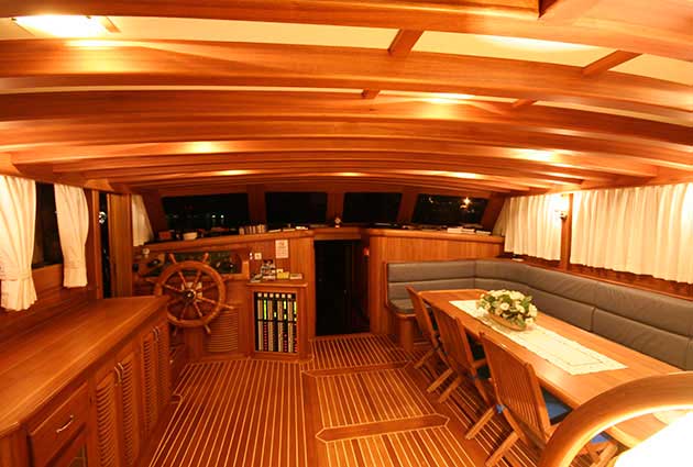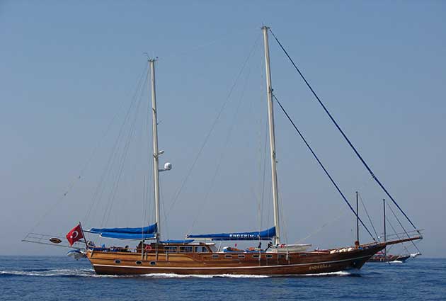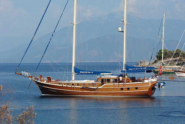 Das Gulet Enderim wurde 2006 gebaut. Es bietet Ihnen eine Blaue Reise mit einer Länge von 29 Metern. Es gibt 6 Doppelkabinen, jede mit eigener Dusche, WC und Klimaanlage. Sie können mit unserem Enderim-Boot eine angenehme und unterhaltsame Blaue Reise auf allen Routen von Bodrum, Göcek, Marmaris und Fethiye planen. Unser Enderim-Boot verfügt über separate Essbereiche auf dem Deck und in der Lounge, eine voll ausgestattete Küche, eine amerikanische Bar und separate Wohnbereiche für die Crew. Auf dem Deck gibt es Sonnenbereiche, auf denen 12 Personen bequem sonnenbaden können.