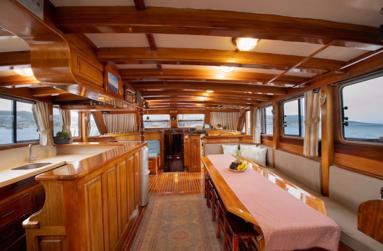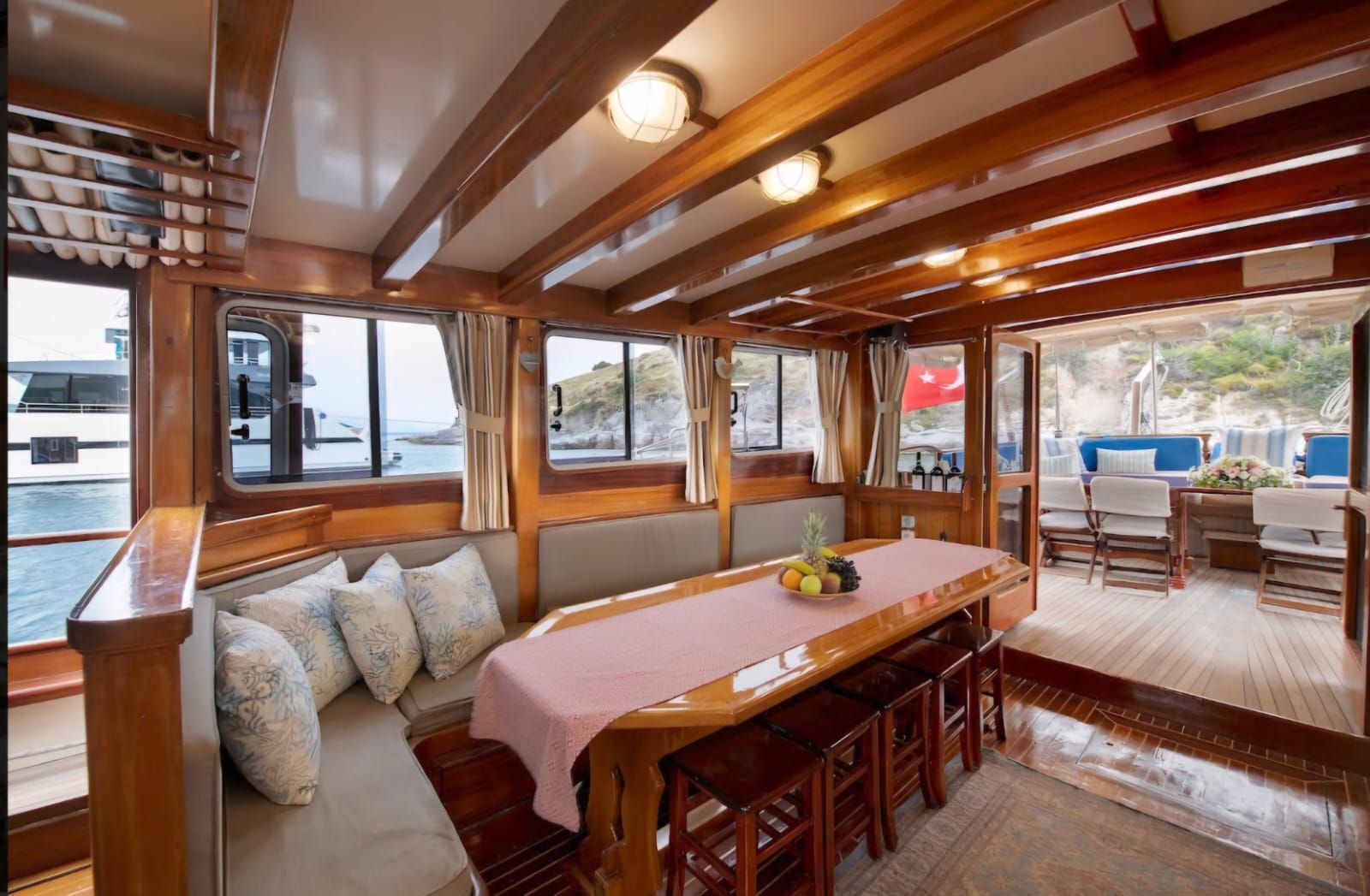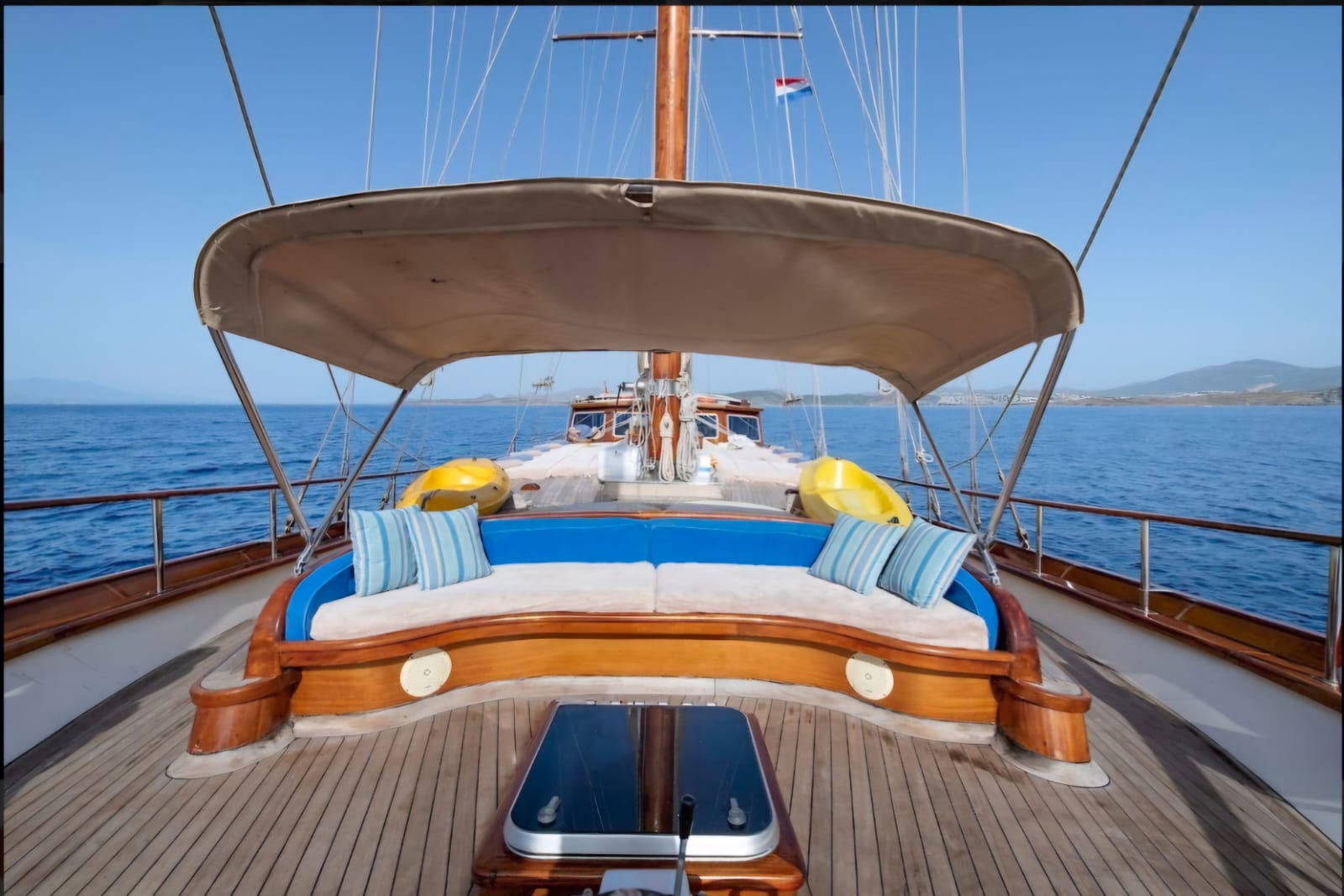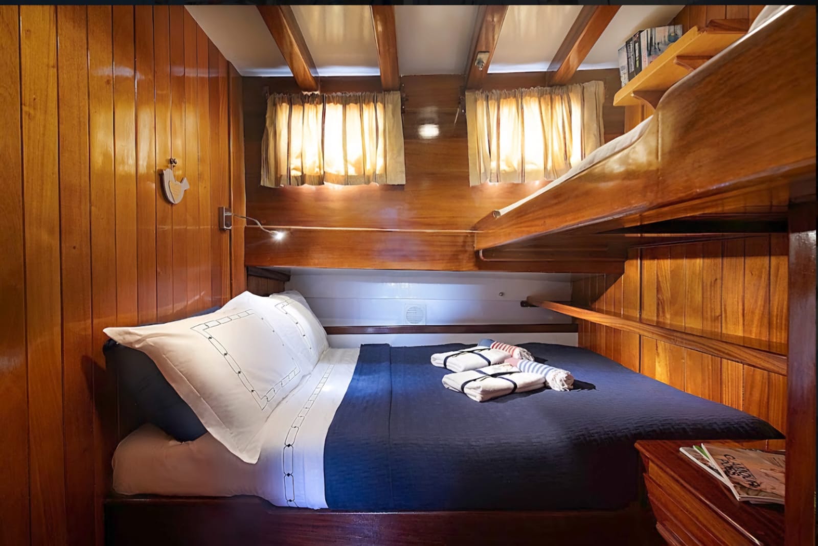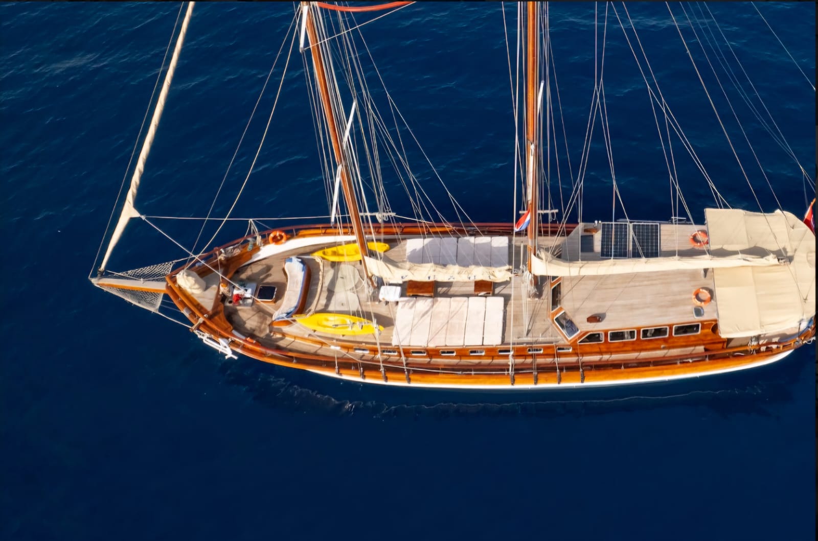 | Die Gulet Kugu 1 ist eine 25 Meter lange traditionelle Holzyacht, gebaut 2002 und 2012 renoviert. Sie verbindet klassischen Stil mit gutem Preis-Leistungs-Verhältnis. Mit sechs Doppelkabinen, jeweils mit eigenem Bad, bietet sie Platz für bis zu zwölf Gäste. Die 6,30 Meter breite Struktur bietet ausreichend Platz auf Deck und im Innenraum. Das Deck bietet schattige und offene Loungebereiche sowie große Sonnenflächen. Der Salon verfügt über einen Essbereich, bequeme Sitze und eine voll ausgestattete Kombüse. Für Wassersport bietet Kugu 1 ein 9,9 PS Beiboot, ein Kanu, Schnorchel- und Angelausrüstung – ideal für entspannte Stunden auf See. Angetrieben wird sie von einem 280 PS Cummins-Motor und einem 18 kVA Generator, mit einer Reisegeschwindigkeit von 12 Knoten. Stromsysteme: 12V/24V/220V. Klimaanlage: 6 Stunden täglich. Die Kugu 1 ist ideal für Familien oder Gruppen, die eine erschwingliche Blaue Reise mit Komfort, Funktionalität und klassischem Charme genießen möchten. |
