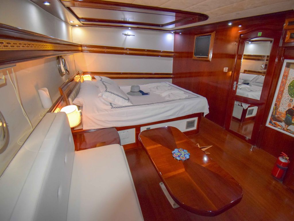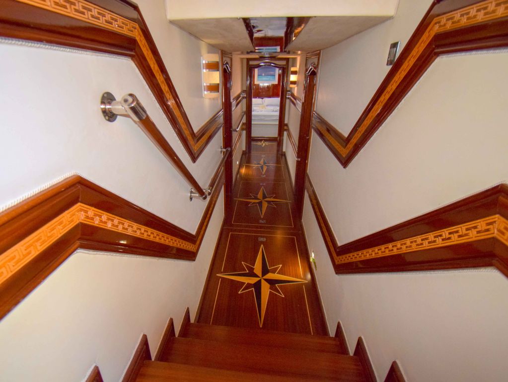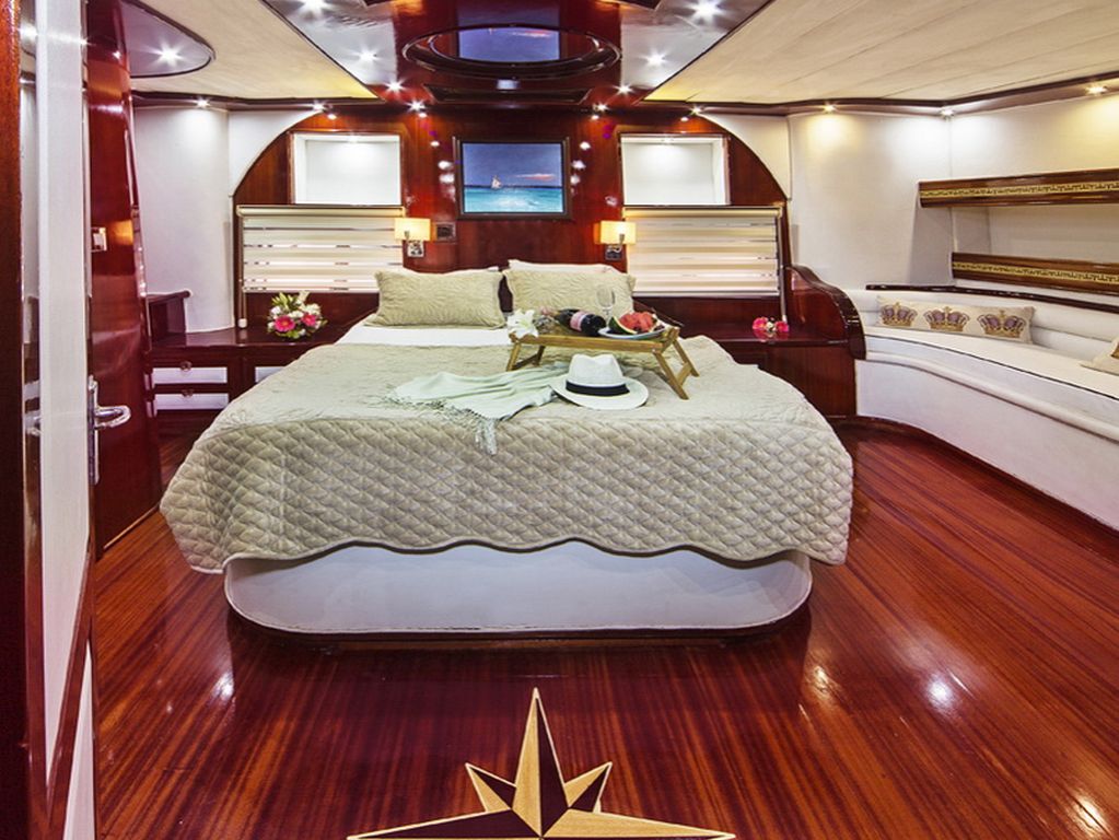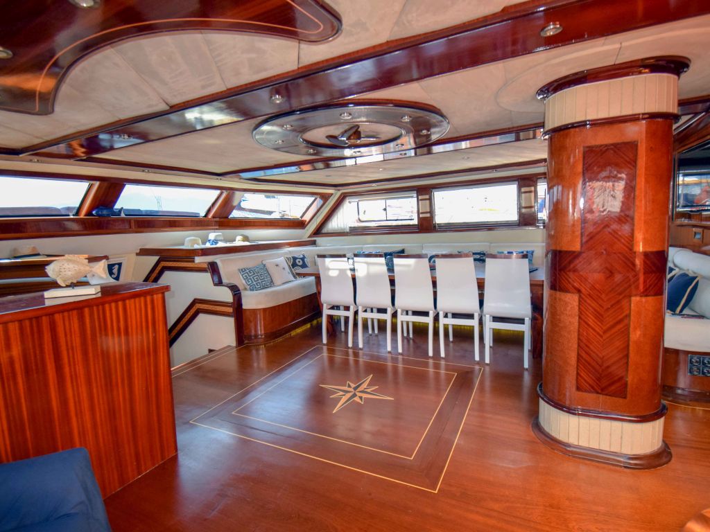Kapazität für bis zu 12 Gäste; 2 Master, 2 Doppel, 2 Zweibettkabinen, Klimaanlage, Duschkabine und häusliche Toiletten in allen Kabinen, separate Crew-Kabinen. |