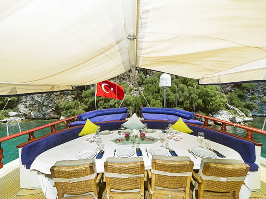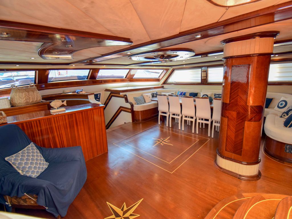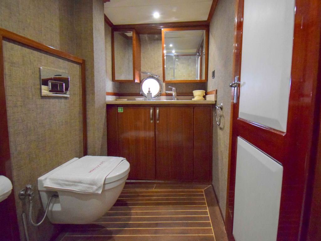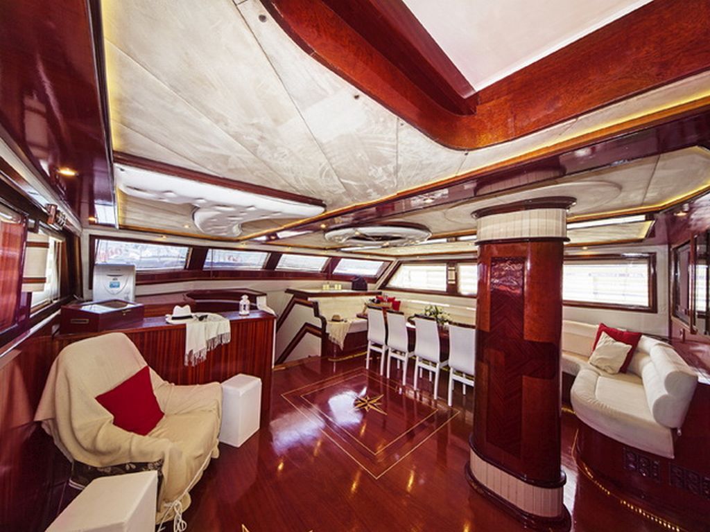 Kapazität für bis zu 12 Gäste; 2 Master, 2 Doppel, 2 Zweibettkabinen, Klimaanlage, Duschkabine und häusliche Toiletten in allen Kabinen, separate Crew-Kabinen. |