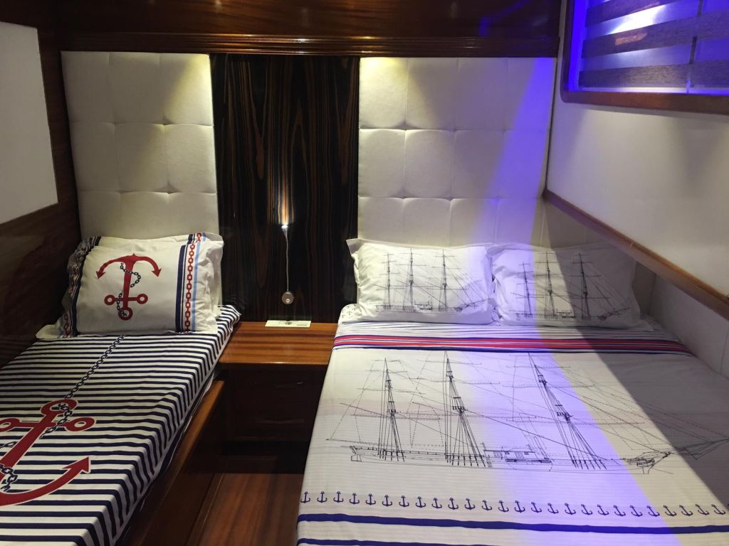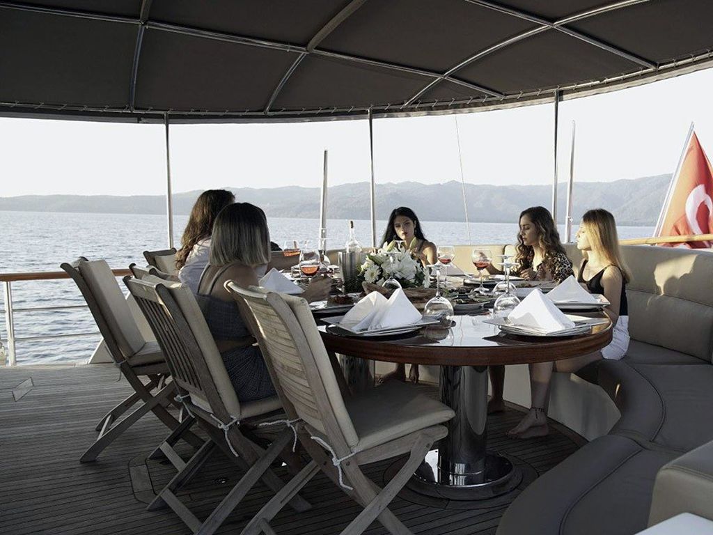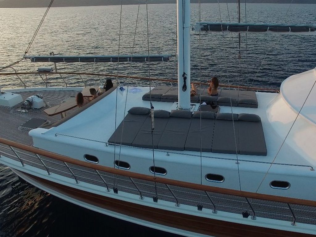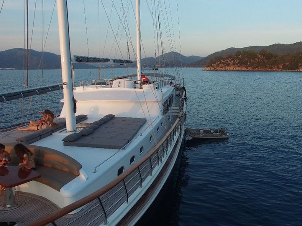 Das Gulet Sadiye Hanim wurde 2018 gebaut. Es bietet Ihnen eine Blaue Reise mit einer Länge von 34 Metern. Es gibt 6 Doppelkabinen, jede mit eigener Dusche, WC und Klimaanlage. Sie können mit unserem Boot Sadiye Hanim eine angenehme und unterhaltsame Blaue Reise auf allen Routen von Bodrum, Göcek, Marmaris und Fethiye planen. Unser Boot, Sadiye Hanim, verfügt über separate Essbereiche auf dem Deck und in der Lounge, eine voll ausgestattete Küche, eine amerikanische Bar und separate Wohnbereiche für die Crew. Auf dem Deck gibt es Sonnenbereiche, auf denen 12 Personen bequem sonnenbaden können.