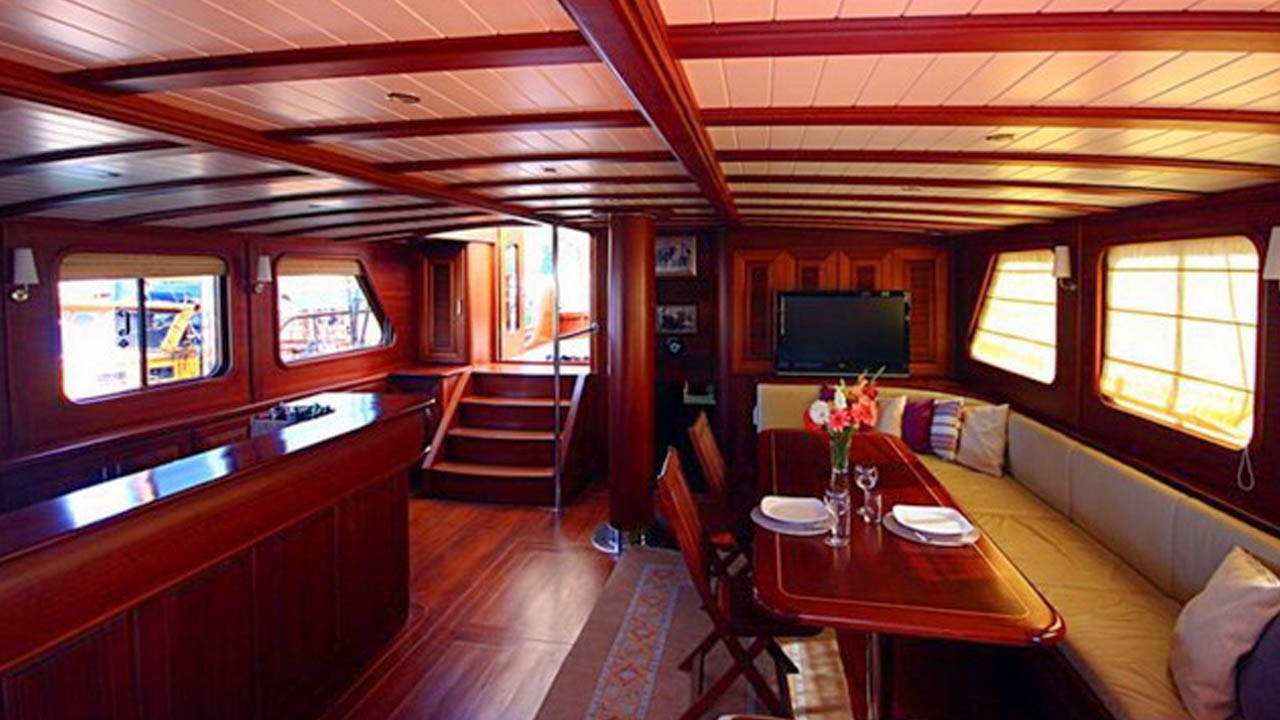 | Die Gulet Sema Tuana ist eine 32 Meter lange Luxus-Gulet, die 2008 vom Stapel lief und 2017 modernisiert wurde. Das Anwesen verfügt über sechs Kabinen, darunter zwei Master-Suiten, zwei Doppelkabinen und zwei Zweibettkabinen, und bietet Platz für bis zu 12 Gäste. Jede Kabine ist mit Klimaanlage, eigenem Bad und elegantem Dekor ausgestattet. Das Deck bietet einen großzügigen Essbereich im Freien, bequeme Liegen und viel Platz zum Sonnenbaden. Der Salon ist geschmackvoll eingerichtet und mit modernen Annehmlichkeiten ausgestattet. Für Wassersportaktivitäten stehen ein 70 PS starkes Beiboot, ein Jetski, Wasserski, Wakeboard, Kanu, Schnorchelausrüstung und Angelausrüstung zur Verfügung. Die Details zum Treffen finden Sie unten. Das Schiff wird von zwei 370 PS starken Scania-Motoren angetrieben, die jeweils einen 22,5 kVA-Generator antreiben und eine Reisegeschwindigkeit von 10 Knoten ermöglichen. Eine Klimaanlage ist rund um die Uhr verfügbar. Die Gulet Sema Tuana ist die perfekte Wahl für alle, die Luxus, Stil und Abenteuer auf dem türkisfarbenen Wasser der Türkei suchen. |