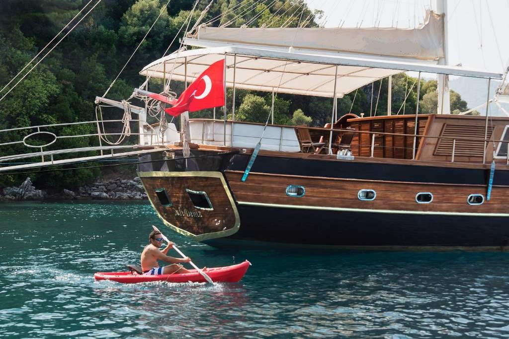 Es gibt Kanus, Schnorchel, Masken, Flossen und einfache Angelausrüstung, um die Zeit auf See angenehmer zu gestalten, und um die Zeit auf dem Deck unterhaltsamer zu gestalten, gibt es ein Rommé-Set, Backgammon, Spielkarten, einen DVD-Player, ein Musiksystem und eine Klimaanlage. Unser erfahrenes Personal auf dem Boot steht Ihnen bei der Zubereitung von Speisen, dem Service, der täglichen Reinigung und allen Angelegenheiten, die Sie während der Blauen Reise benötigen, zur Verfügung. Der Kapitän und die Besatzung, die über Segelerfahrung verfügen, werden segeln, wenn das Wetter es zulässt, und Sie können das Vergnügen einer Segel-Blauen-Kreuzfahrt in der Ägäis erleben. Um eine kostengünstige und angenehme Blaue Tour in türkischen Hoheitsgewässern zu erleben, laden wir Sie zu einer Blauen Reise mit unserem Gulet Sude Deniz ein.