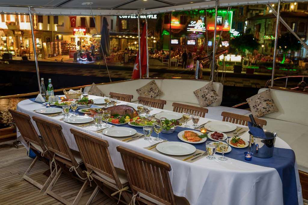 Das Gulet Sude Deniz wurde 1997 gebaut und 2015 nach neuen Technologien renoviert. Es bietet Ihnen eine Blaue Reise mit einer Länge von 24,80 Metern. Es gibt 6 Doppelkabinen, jede mit eigener Dusche, WC und Klimaanlage. Sie können mit unserem Boot Sude Deniz eine angenehme und unterhaltsame Blaue Reise auf einer der Routen Bodrum, Göcek, Marmaris und Fethiye planen. Unser Boot Sude Deniz verfügt über separate Essbereiche auf dem Deck und in der Lounge, eine voll ausgestattete Küche, eine amerikanische Bar und separate Wohnbereiche für die Besatzung. Auf dem Deck gibt es Sonnenbereiche, auf denen 12 Personen bequem sonnenbaden können.