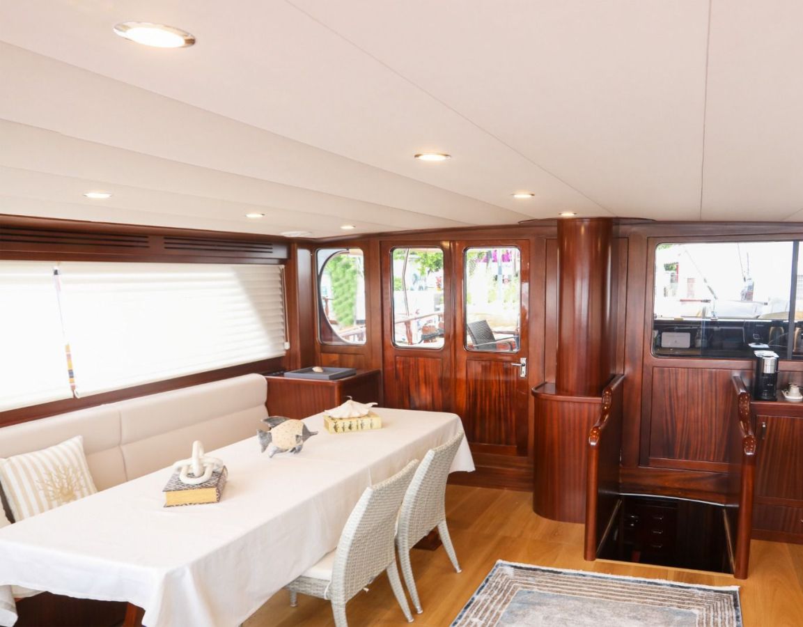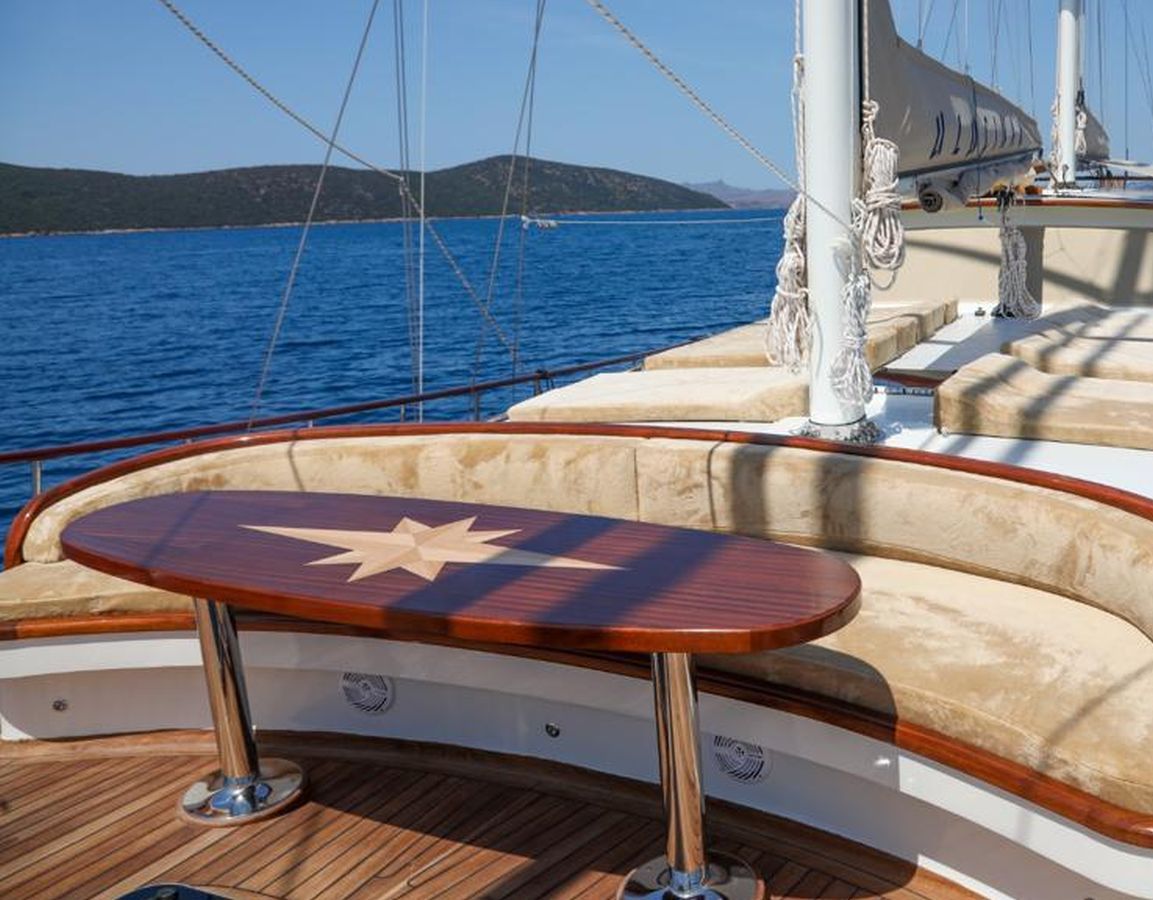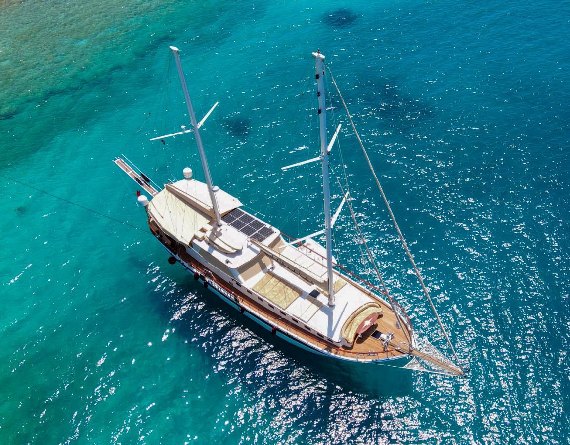Das Gulet Ulucinar wurde im Jahr 2000 gebaut und 2014 nach neuen Technologien renoviert. Es bietet Ihnen eine 25 Meter lange Blaue Reise. Es gibt 6 Doppelkabinen, jede mit eigener Dusche, WC und Klimaanlage. Mit unserem Ulucinar-Boot können Sie eine angenehme und unterhaltsame Blaue Reise auf einer der Routen Bodrum, Göcek, Marmaris und Fethiye planen. Unser Ulucinar-Boot verfügt über separate Essbereiche auf dem Deck und in der Lounge, eine voll ausgestattete Küche, eine amerikanische Bar und separate Wohnbereiche für die Crew. Auf dem Deck gibt es Sonnenbereiche, auf denen 12 Personen bequem sonnenbaden können.