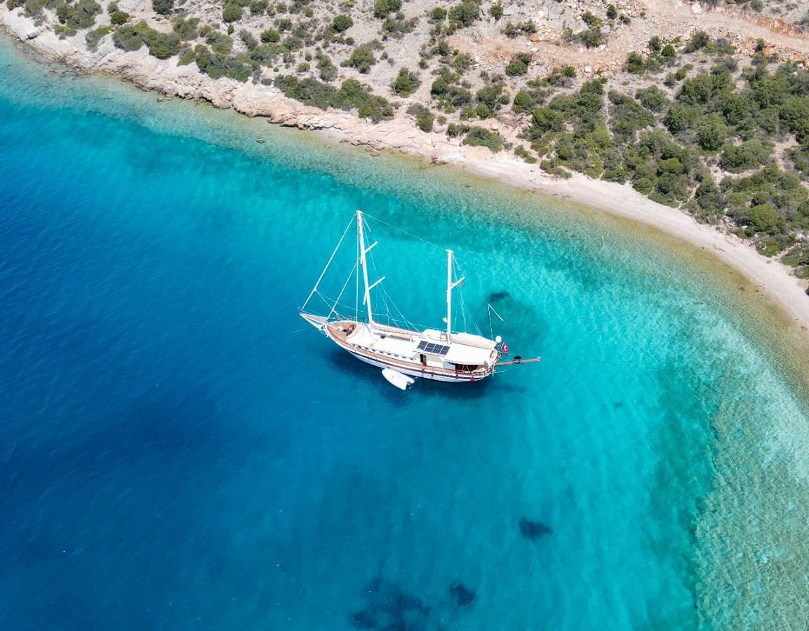 Es gibt Kanus, Schnorchel, Masken, Flossen und einfache Angelausrüstung, um die Zeit auf See angenehmer zu gestalten, und um die Zeit auf dem Deck unterhaltsamer zu gestalten, gibt es ein Rommé-Set, Backgammon, Spielkarten, einen DVD-Player, ein Musiksystem und eine Klimaanlage. Unser erfahrenes Personal auf dem Boot steht Ihnen bei der Zubereitung von Speisen, dem Service, der täglichen Reinigung und allen Angelegenheiten, die Sie während der Blauen Reise benötigen, zur Verfügung. Der Kapitän und die Besatzung, die über Segelerfahrung verfügen, werden segeln, wenn das Wetter es zulässt, und Sie können das Vergnügen einer Segel-Blauen-Kreuzfahrt in der Ägäis erleben. Um eine preiswerte und angenehme Blaue Tour in türkischen Hoheitsgewässern zu erleben, laden wir Sie zu einer Blauen Reise mit unserer Ulucinar-Gulet ein.