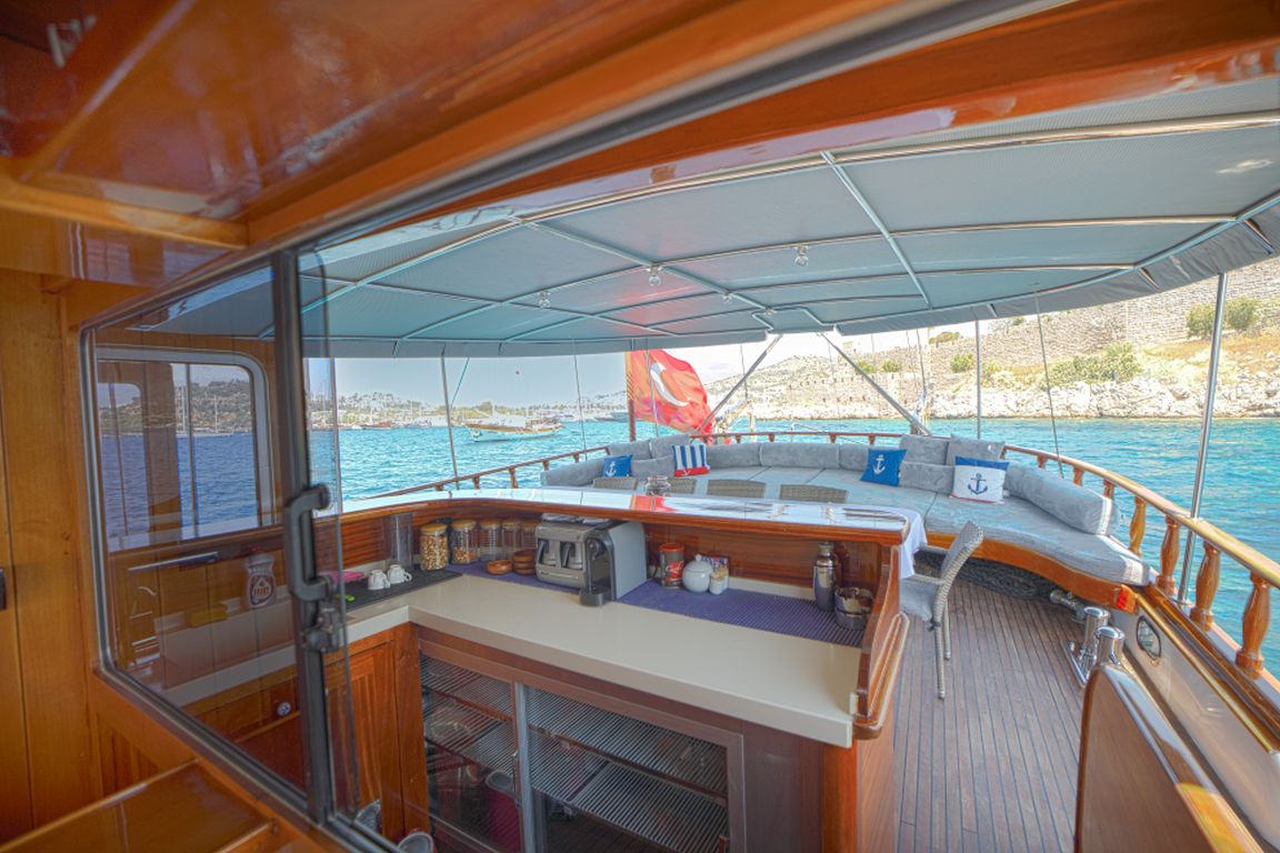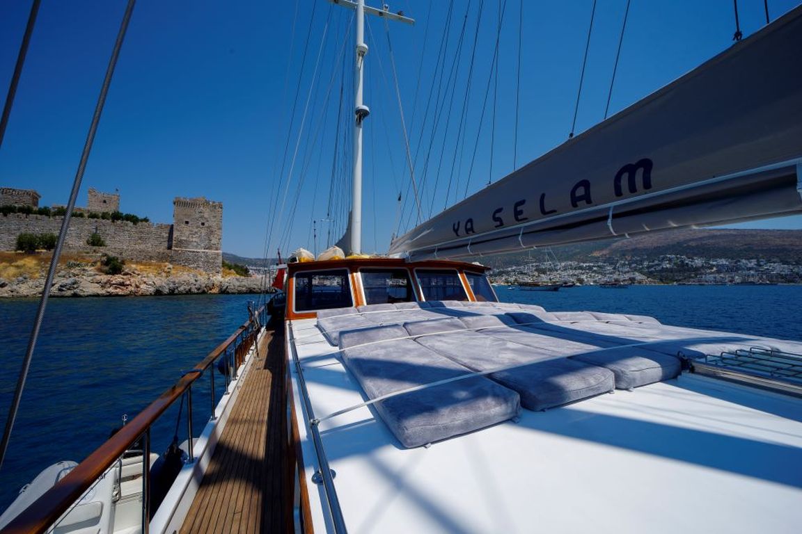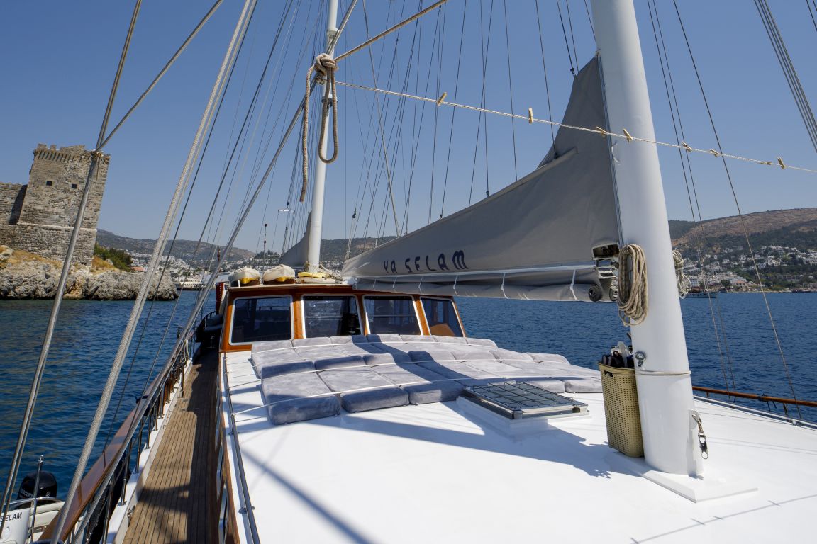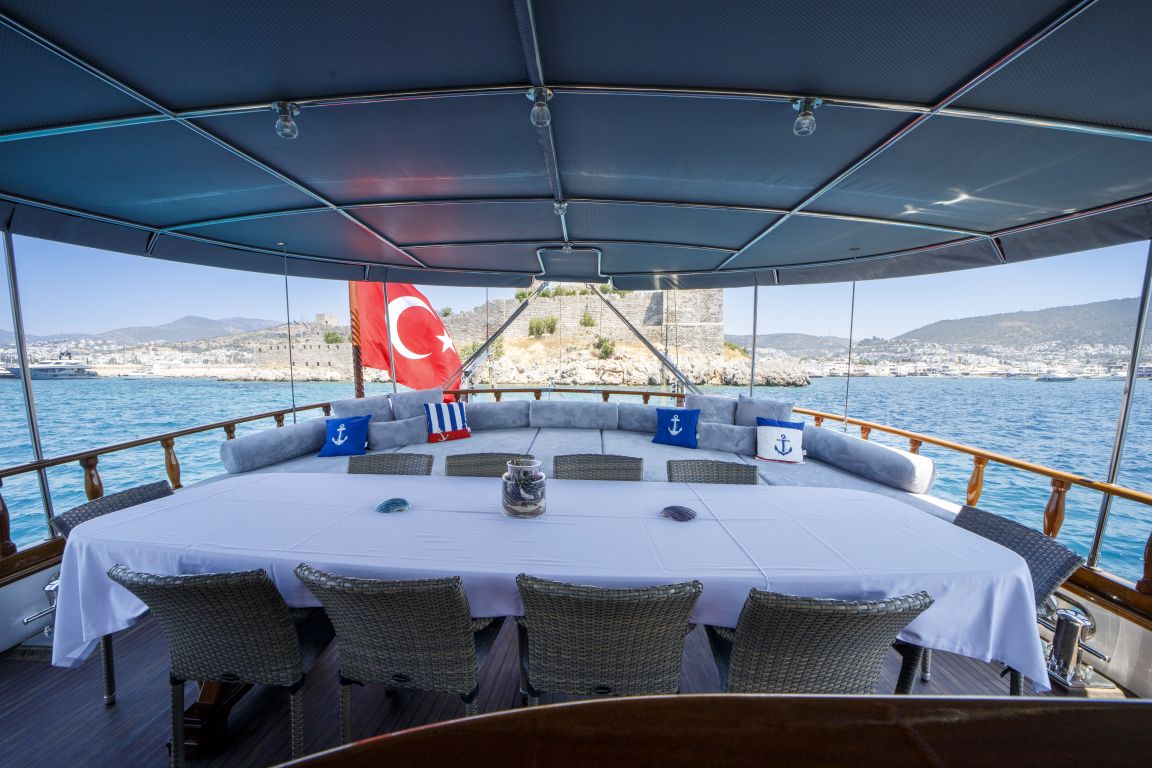 Das große und komfortable Wohnzimmer ist mit Geräten wie Fernseher, Satellitenfernsehen und CD-Player ausgestattet, um Ihre Zeit außerhalb des Meeres noch angenehmer zu gestalten. Während Sie die in unserer voll ausgestatteten Küche zubereiteten Mahlzeiten genießen, können Sie auch jeden Blauton entdecken. Wir haben 4 erfahrene Mitarbeiter auf unserer Gulet und unser Personal wird Sie beim Service, der Essenszubereitung, der täglichen Reinigung und allen anderen Angelegenheiten, die Sie benötigen, unterstützen. Wir garantieren eine hundertprozentige Kundenzufriedenheit auf unserer Yacht basierend auf dem Feedback und den Referenzen, die wir in den letzten Jahren von unseren Kunden während der Vermietungen erhalten haben, die wir mit unserer Gulet Ya Selam in Bodrum vorgenommen haben. Wir laden Sie ein, die Küsten von Bodrum – Gökova – Marmaris – Hisaronu – Göcek Fethiye mit Gulet Ya Selam zu erkunden.