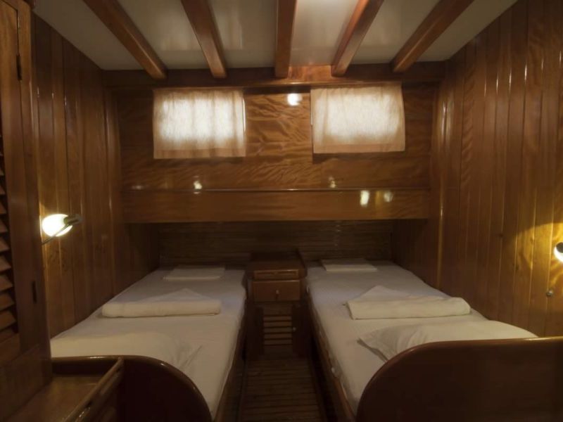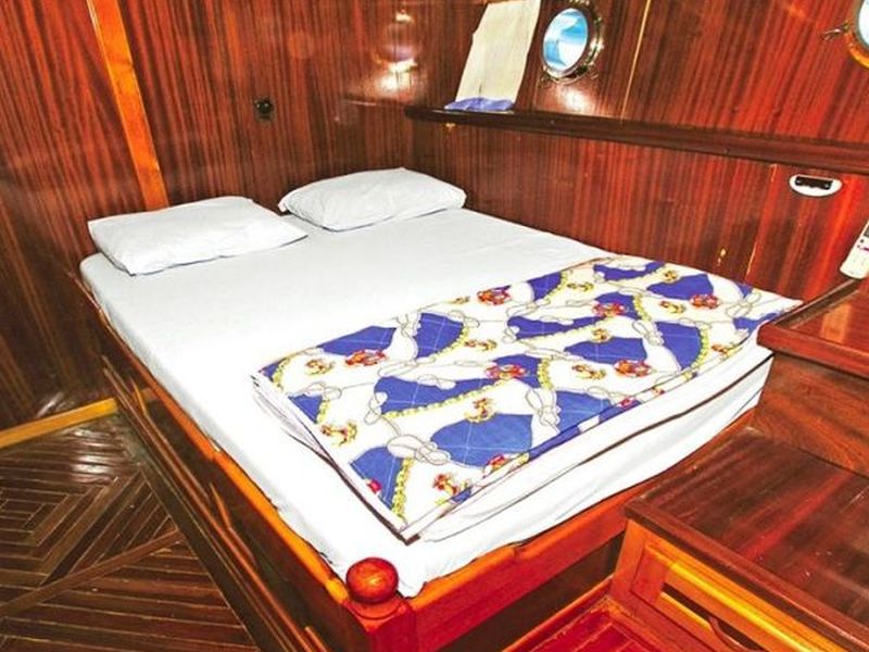 Unser 8-Kabinen-Gulet hat 6 Doppel- und 2 Zweibettkabinen mit Klimaanlage, Toilette und Dusche in jeder Kabine und bietet problemlos Platz für insgesamt 16 Gäste. Das große und komfortable Wohnzimmer ist mit Geräten wie Fernseher, Satellitenfernsehen und CD-Player ausgestattet, um Ihre Zeit außerhalb des Meeres noch angenehmer zu gestalten. Während Sie die in unserer voll ausgestatteten Küche zubereiteten Mahlzeiten genießen, können Sie auch jeden Blauton entdecken.