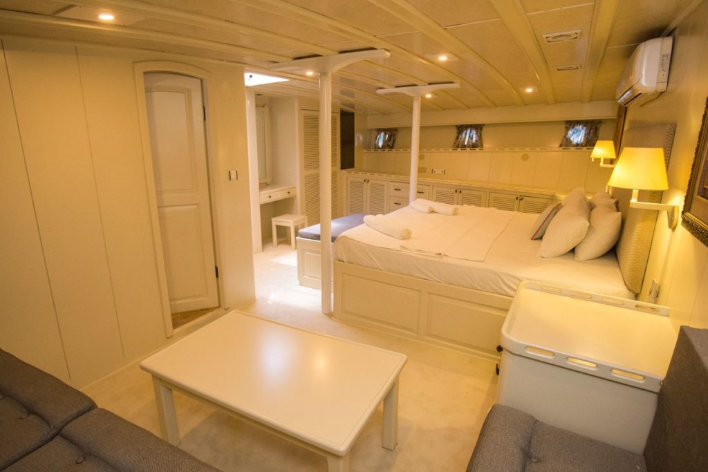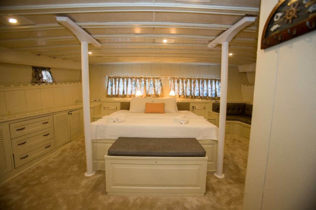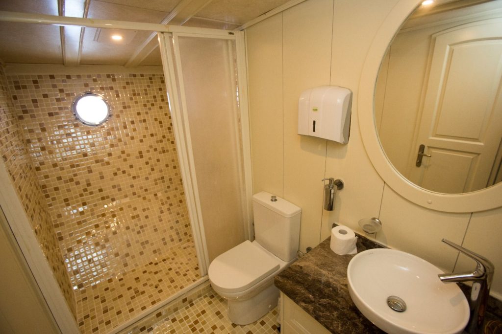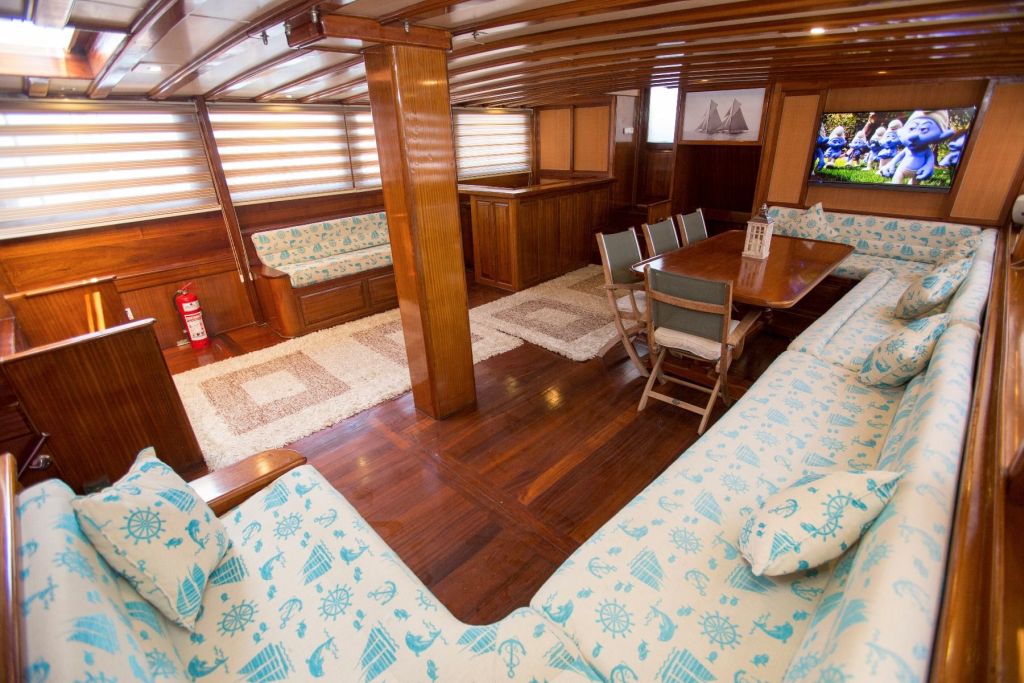 Unser 8-Kabinen-Gulet hat 2 Master- und 6 Doppelkabinen, mit Klimaanlage, Toilette und Dusche in jeder Kabine, und bietet problemlos Platz für insgesamt 16 Gäste. Das große und komfortable Wohnzimmer ist mit Geräten wie Fernseher, Satellitenfernsehen und CD-Player ausgestattet, um Ihre Zeit außerhalb des Meeres noch angenehmer zu gestalten. Während Sie die in unserer voll ausgestatteten Küche zubereiteten Mahlzeiten genießen, können Sie auch jeden Blauton entdecken.