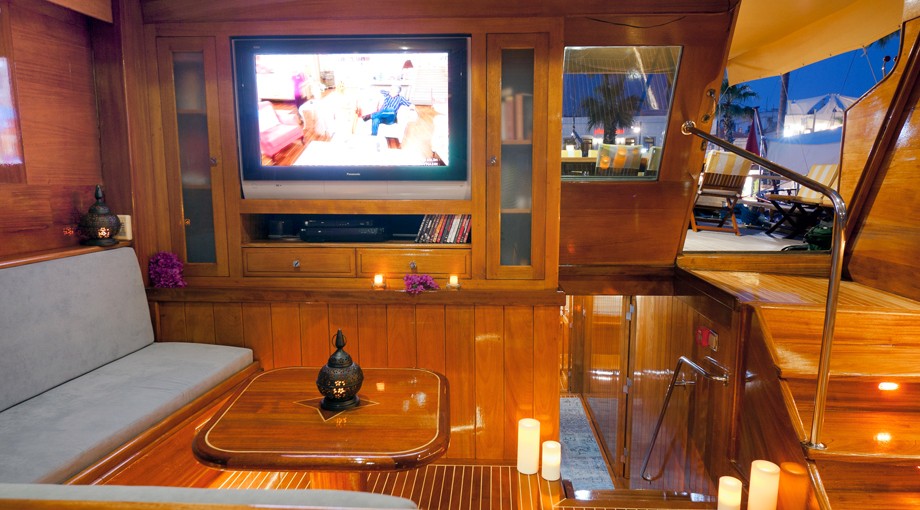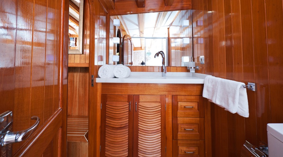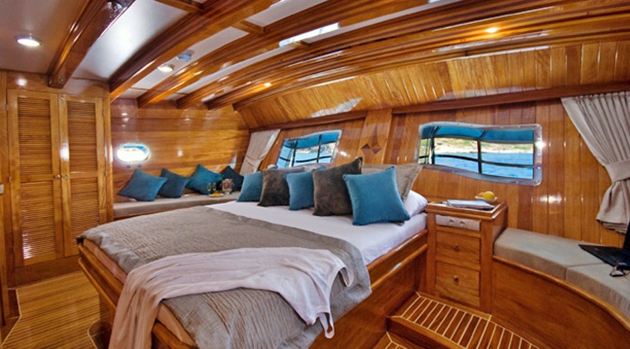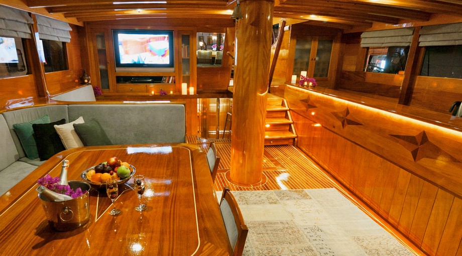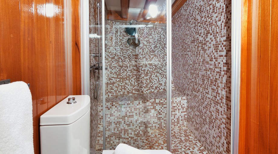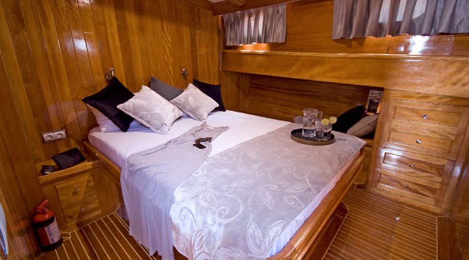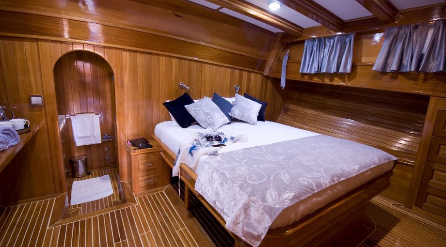 Unsere Gulet mit 8 Kabinen verfügt über 4 Master-Kabinen, 1 Doppelkabine, 1 Dreibettkabine und 2 Zweibettkabinen. Jede Kabine ist mit Klimaanlage, WC und Dusche ausgestattet und bietet bequem Platz für insgesamt 17 Gäste. Der große und komfortable Salon ist mit Fernseher, Sat-TV und CD-Player ausgestattet, damit Sie Ihre Zeit an Land noch angenehmer gestalten können. Während Sie die in unserer voll ausgestatteten Küche zubereiteten Mahlzeiten genießen, können Sie die ganze Vielfalt des Meeres entdecken.