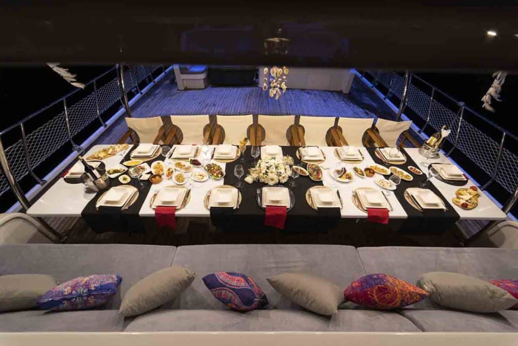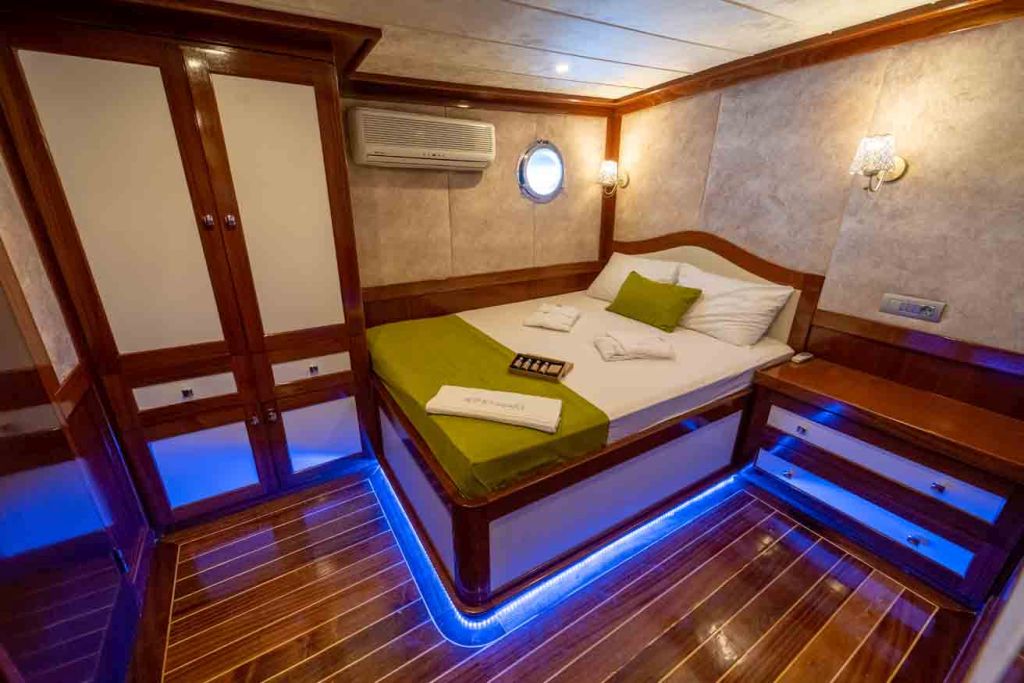 Die Gulet Queen Of RTT, eines der schönsten Boote unserer Gulet-Flotte, verspricht Komfort und Bequemlichkeit für große Gruppen und Familien. Die Gulet Queen Of RTT, die 2009 zum ersten Mal vom Stapel lief, wurde 2021 für Ihre Bequemlichkeit und Ihren Komfort erneuert. Das Queen Of RTT-Boot ist 32 m lang. Mit seiner Länge und Breite von 7,50 Metern bietet es sowohl komfortable klimatisierte Kabinen als auch ein komfortables und geräumiges Deck. Mit dem Boot Queen Of RTT können Sie eine der Routen Bodrum, Gökova, Marmaris oder Fethiye wählen oder je nach Dauer Ihres Urlaubs zwei Routen der Blauen Kreuzfahrt kombinieren und unser Gulet für 14 Tage mieten. Unser 8-Kabinen-Gulet verfügt über 8 Doppelkabinen, einschließlich Klimaanlage, Toilette und Dusche in jeder Kabine, und bietet problemlos Platz für insgesamt 16 Gäste. Das große und komfortable Wohnzimmer ist mit Geräten wie Fernseher, Satellitenfernsehen und CD-Player ausgestattet, um Ihre Zeit außerhalb des Meeres noch angenehmer zu gestalten. Während Sie die in unserer voll ausgestatteten Küche zubereiteten Mahlzeiten genießen, können Sie auch jeden Blauton entdecken. Wir haben 6 erfahrene Mitarbeiter auf unserem Gulet und unser Personal wird Sie beim Service, der Essenszubereitung, der täglichen Reinigung und allen anderen Angelegenheiten, die Sie benötigen, unterstützen. Wir garantieren eine hundertprozentige Kundenzufriedenheit auf unserer Yacht basierend auf dem Feedback und den Referenzen, die wir in den letzten Jahren von unseren Kunden während der Anmietungen erhalten haben, die wir in Bodrum mit unserem Gulet Queen Of RTT vorgenommen haben. Wir laden Sie ein, die Küsten von Bodrum – Gökova – Marmaris – Hisaronu – Göcek – Fethiye mit Queen Of RTT zu erkunden. |
