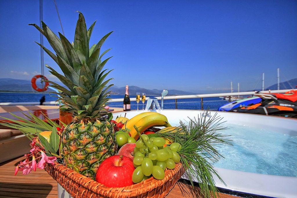 Die Gulet Queen Of Salmakis, eines der schönsten und größten Boote unserer Gulet-Flotte, verspricht Komfort und Bequemlichkeit für große Gruppen und Familien. Unser Boot Queen Of Salmakis wurde 2019 vom Stapel gelassen. Das Boot Queen Of Salmakis ist 39,10 m lang. Mit seiner Länge und Breite von 8,50 Metern bietet es sowohl komfortable klimatisierte Kabinen als auch ein komfortables und geräumiges Deck. Mit dem Boot Queen Of Salmakis können Sie eine der Routen Bodrum, Gökova, Marmaris oder Fethiye wählen oder je nach Dauer Ihres Urlaubs zwei Routen der Blauen Kreuzfahrt kombinieren und unser Gulet für 14 Tage mieten. Unser 8-Kabinen-Gulet hat 2 Master-, 4 Doppel- und 2 Dreibettkabinen mit Klimaanlage, Toilette und Dusche in jeder Kabine und bietet problemlos Platz für insgesamt 18 Gäste. Das große und komfortable Wohnzimmer ist mit Geräten wie Fernseher, Satellitenfernsehen und CD-Player ausgestattet, um Ihre Zeit außerhalb des Meeres noch angenehmer zu gestalten. Während Sie die in unserer voll ausgestatteten Küche zubereiteten Mahlzeiten genießen, können Sie auch jeden Blauton entdecken. Wir haben 7 erfahrene Mitarbeiter auf unserem Gulet und unser Personal wird Sie beim Service, der Essenszubereitung, der täglichen Reinigung und allen anderen Angelegenheiten, die Sie benötigen, unterstützen. Wir garantieren eine hundertprozentige Kundenzufriedenheit auf unserer Yacht basierend auf dem Feedback und den Referenzen, die wir in den letzten Jahren von unseren Kunden während der Anmietungen erhalten haben, die wir in Bodrum mit unserem Gulet Queen Of Salmakis vorgenommen haben. Wir laden Sie ein, die Küsten von Bodrum – Gökova – Marmaris – Hisaronu – Göcek – Fethiye mit der Gulet Queen Of Salmakis zu erkunden. |