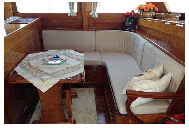 Unsere 8-Kabinen-Gulet verfügt über 8 Doppelkabinen, einschließlich Klimaanlage, Toilette und Dusche in jeder Kabine, und bietet problemlos Platz für insgesamt 16 Gäste. Das große und komfortable Wohnzimmer ist mit Geräten wie Fernseher, Satellitenfernsehen und CD-Player ausgestattet, um Ihre Zeit außerhalb des Meeres noch angenehmer zu gestalten. Während Sie die in unserer voll ausgestatteten Küche zubereiteten Mahlzeiten genießen, können Sie auch jeden Blauton entdecken.