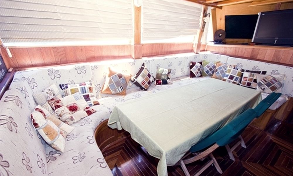 Unser 8-Kabinen-Gulet verfügt über 8 Doppelkabinen, einschließlich Klimaanlage, Toilette und Dusche in jeder Kabine, und bietet problemlos Platz für insgesamt 16 Gäste. Das große und komfortable Wohnzimmer ist mit Geräten wie Fernseher, Satellitenfernsehen und CD-Player ausgestattet, um Ihre Zeit außerhalb des Meeres noch angenehmer zu gestalten. Während Sie die in unserer voll ausgestatteten Küche zubereiteten Mahlzeiten genießen, können Sie auch jeden Blauton entdecken.