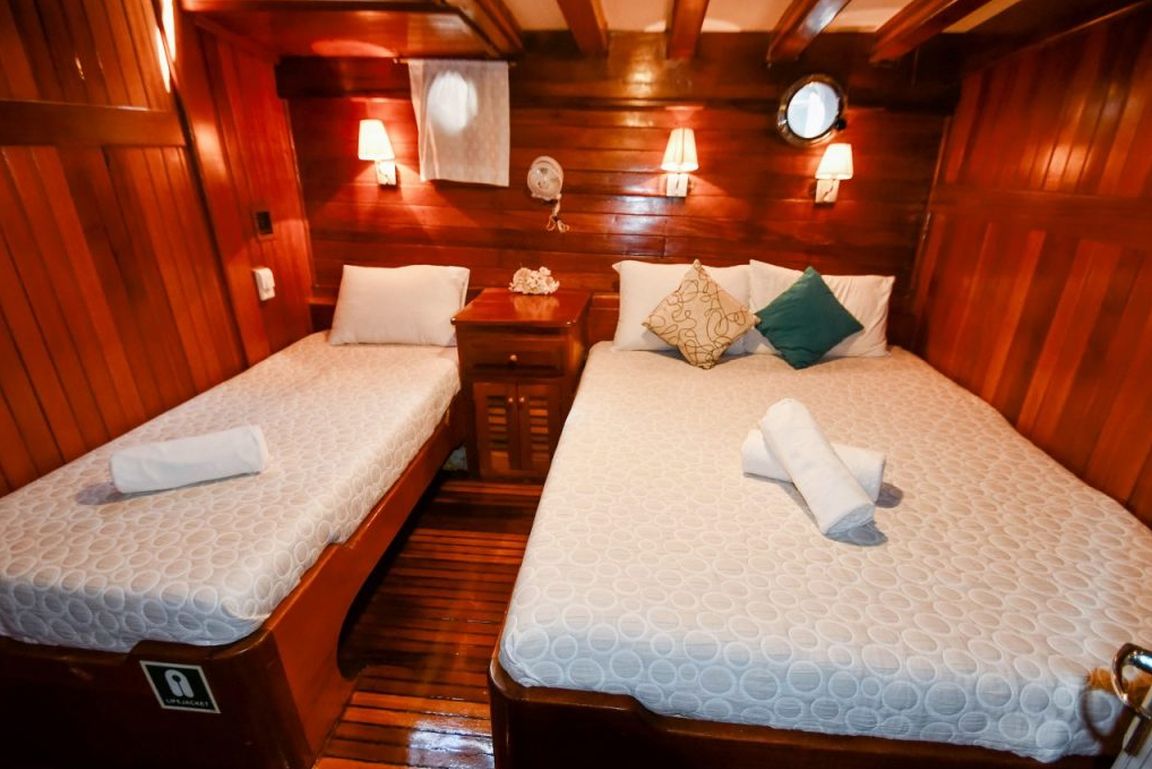 | Bis zu 16 Gästekapazität; 5 Doppel, 1 Dreibett, 2 Zweibettkabinen, Klimaanlage, Duschkabine und Toiletten im Haushaltsstil in allen Kabinen, separate Mannschaftskabinen. |