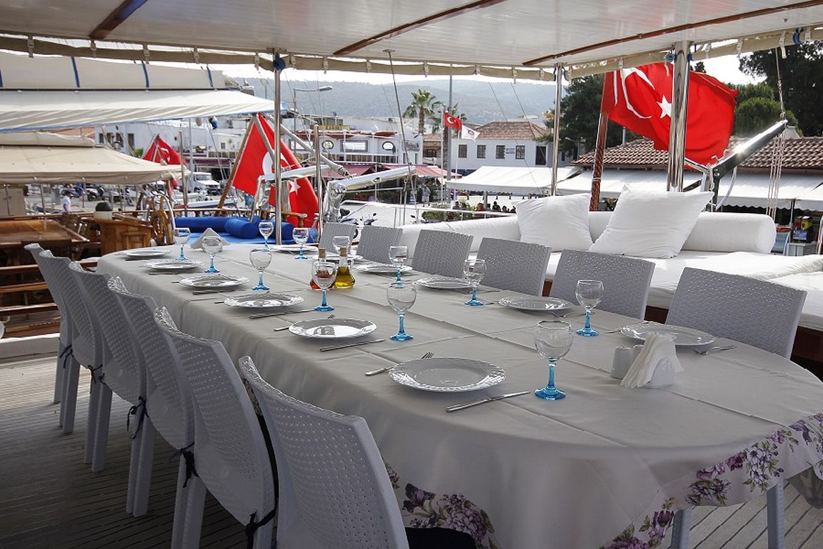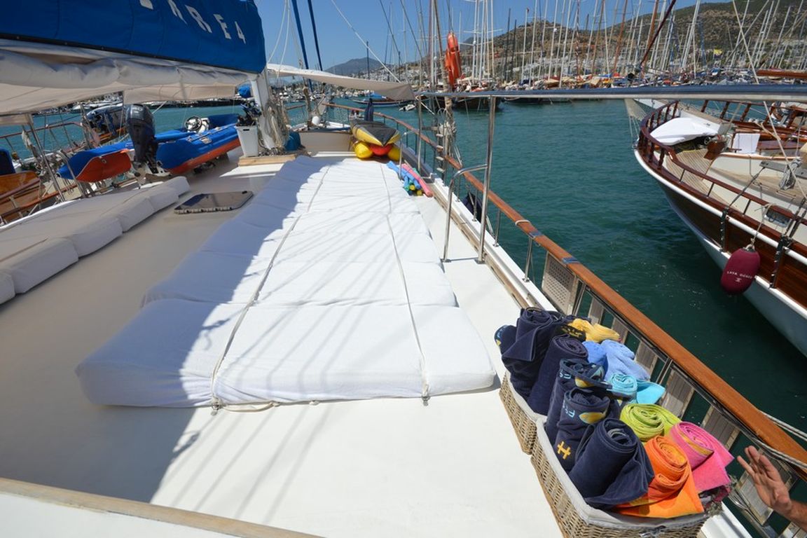 Wir haben 5 erfahrene Mitarbeiter auf unserem Gulet und unser Personal wird Sie beim Service, der Essenszubereitung, der täglichen Reinigung und allen anderen Angelegenheiten, die Sie benötigen, unterstützen. Wir garantieren eine hundertprozentige Kundenzufriedenheit auf unserer Yacht basierend auf dem Feedback und den Referenzen, die wir in den letzten Jahren von unseren Kunden während der Vermietungen erhalten haben, die wir mit unserem Gulet Cemre 4 in Bodrum vorgenommen haben. Wir laden Sie ein, die Küsten von Bodrum – Gökova – Marmaris – Hisaronu – Göcek – Fethiye mit der Gulet Cemre 4 zu erkunden.
