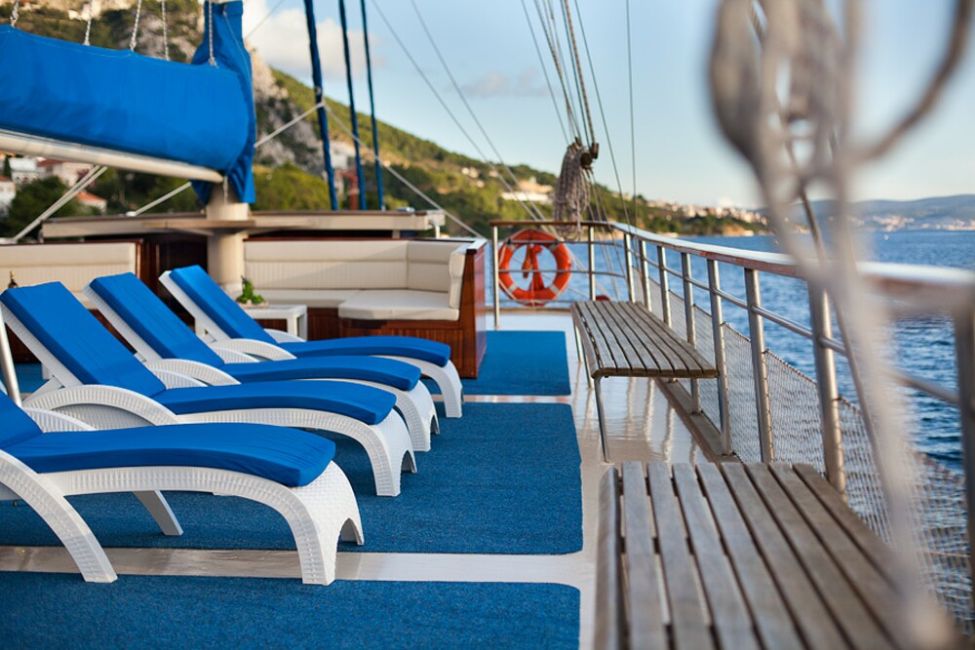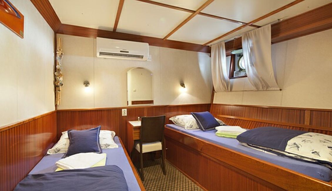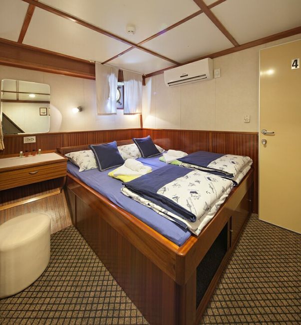 | Bis zu 8 Gäste; 9 Doppelkabinen, Salon und alle Kabinen mit Klimaanlage, Fernseher in allen Kabinen, Duschkabine und Toiletten im Haushaltsstil in allen Kabinen, separate Mannschaftskabinen |