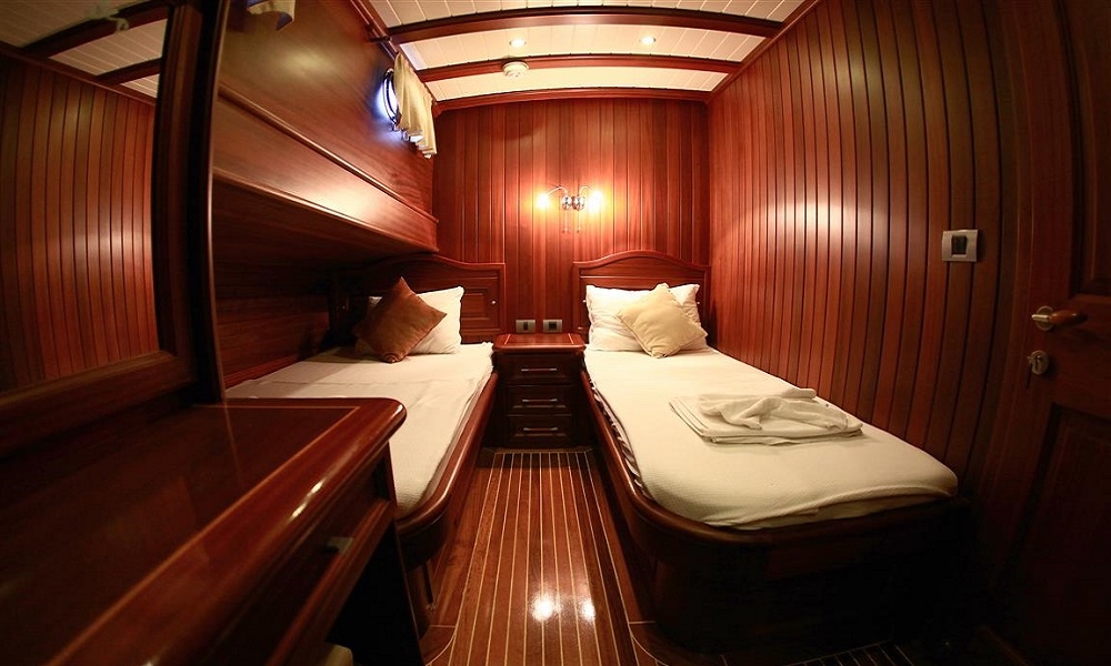 | 8 Gäste; 4 Kabinen; 2 Doppelkabinen, 2 Zweibettkabinen, Dusche und WC in jeder Kabine. |