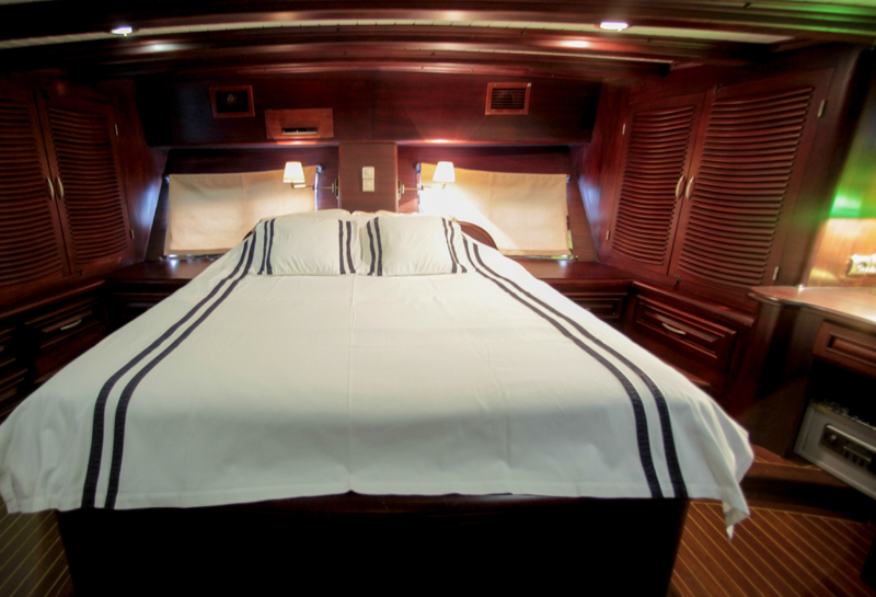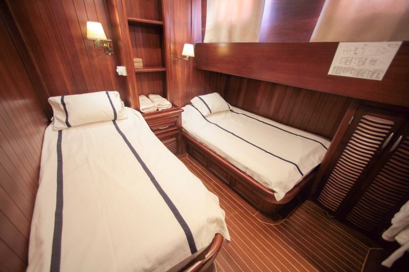 | 10 Gäste; 5 Kabinen; 2 Master-Suiten, 1 Doppel-, 2 Zweibettkabinen, Klimaanlage, Dusche und WC in jeder Kabine. |