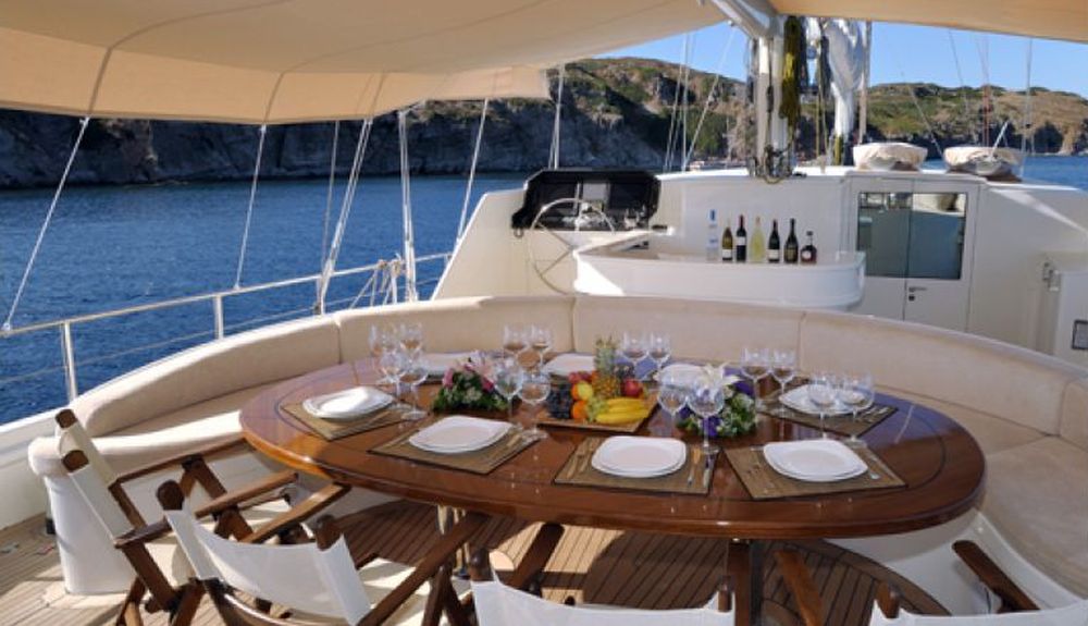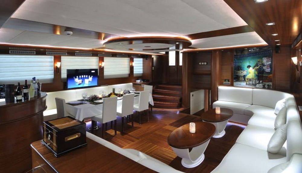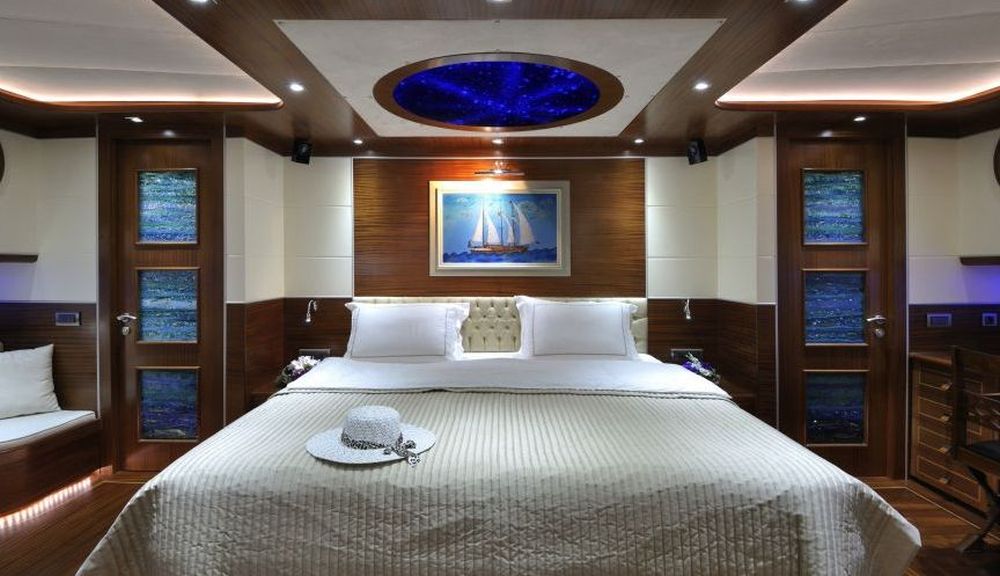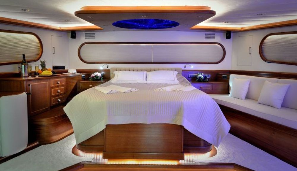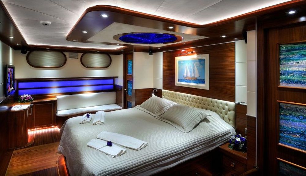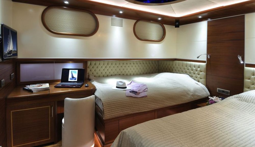 | 12 Gäste; 6 Kabinen; 2 Eignerkabinen, 2 Doppelkabinen, 2 Dreibettkabinen, Klimaanlage, Dusche und WC in jeder Kabine |